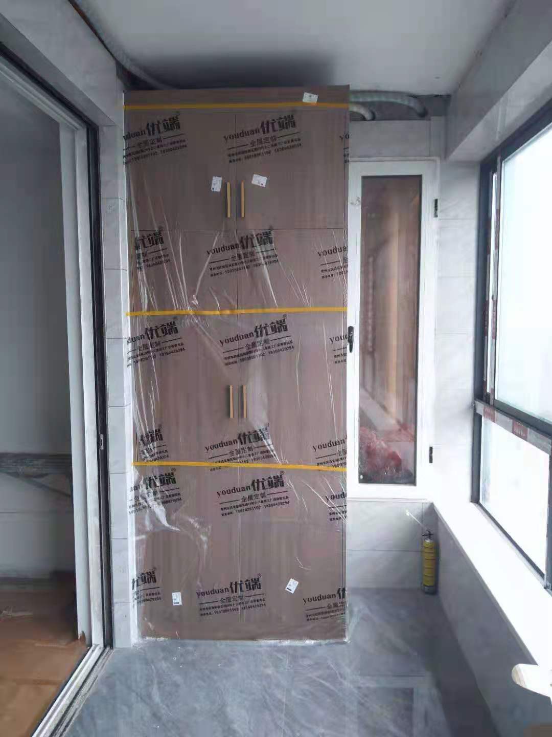 柜子都用塑料膜保護起來了