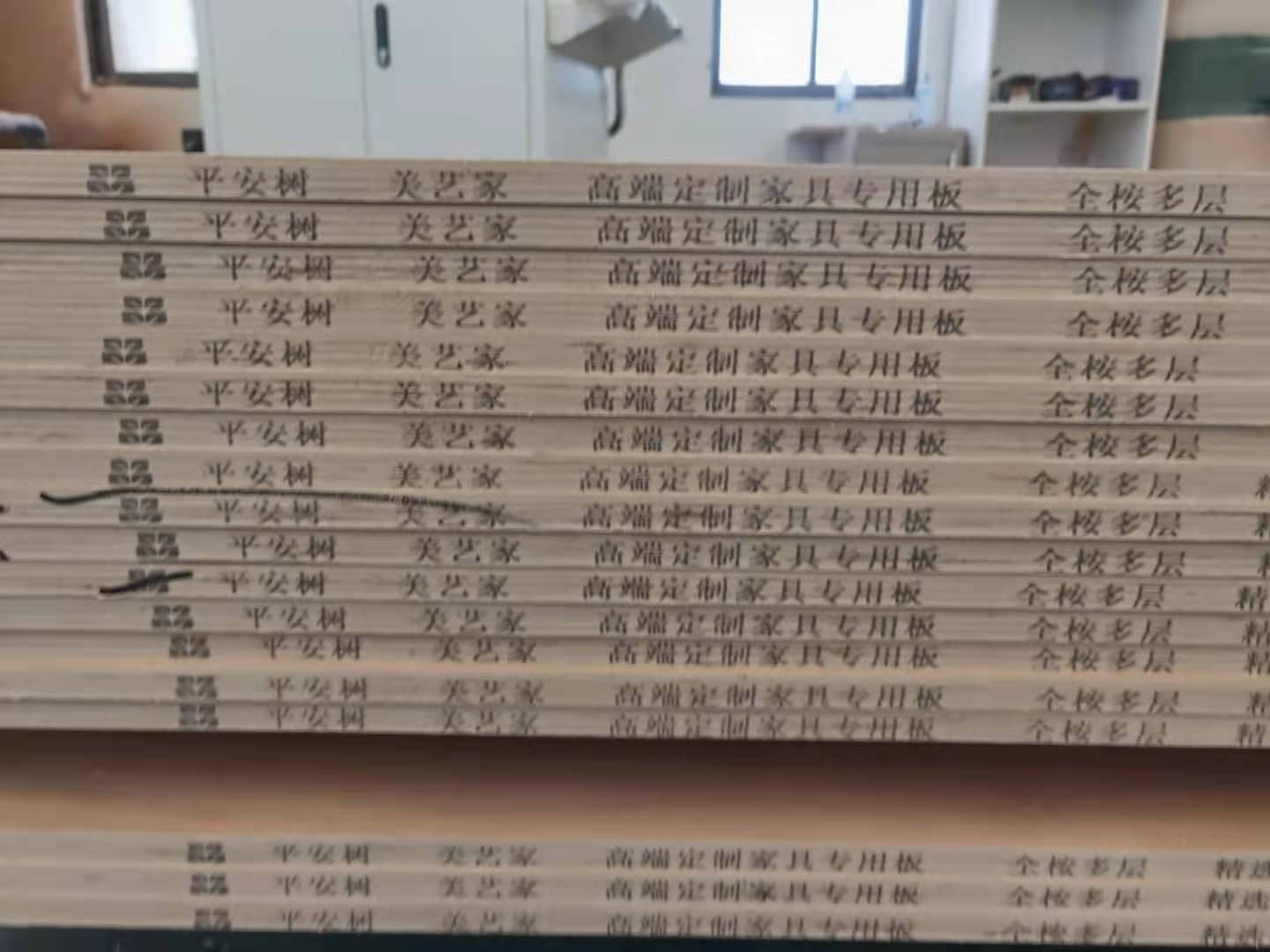 專業(yè)設(shè)備裁板,板材使用平安樹實木多層板E0級制作,有高級的藍(lán)光防偽標(biāo)識哦。