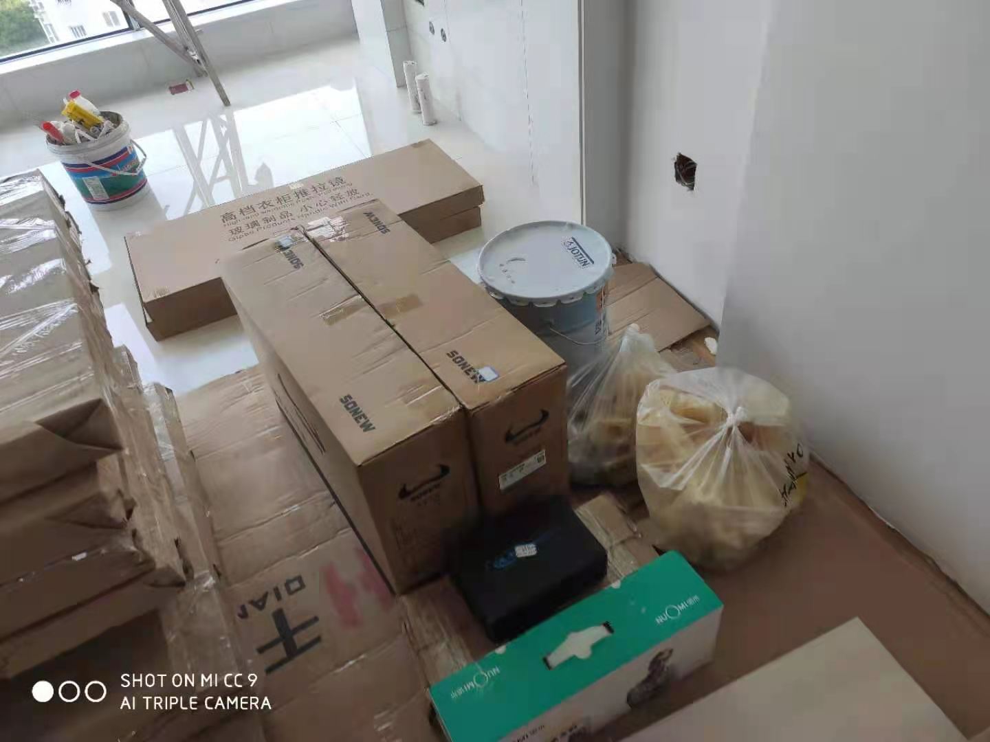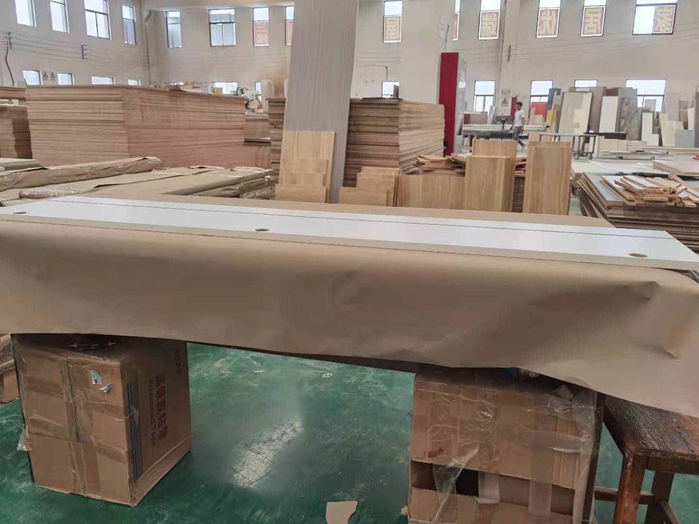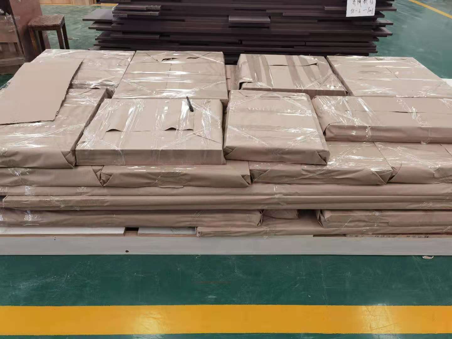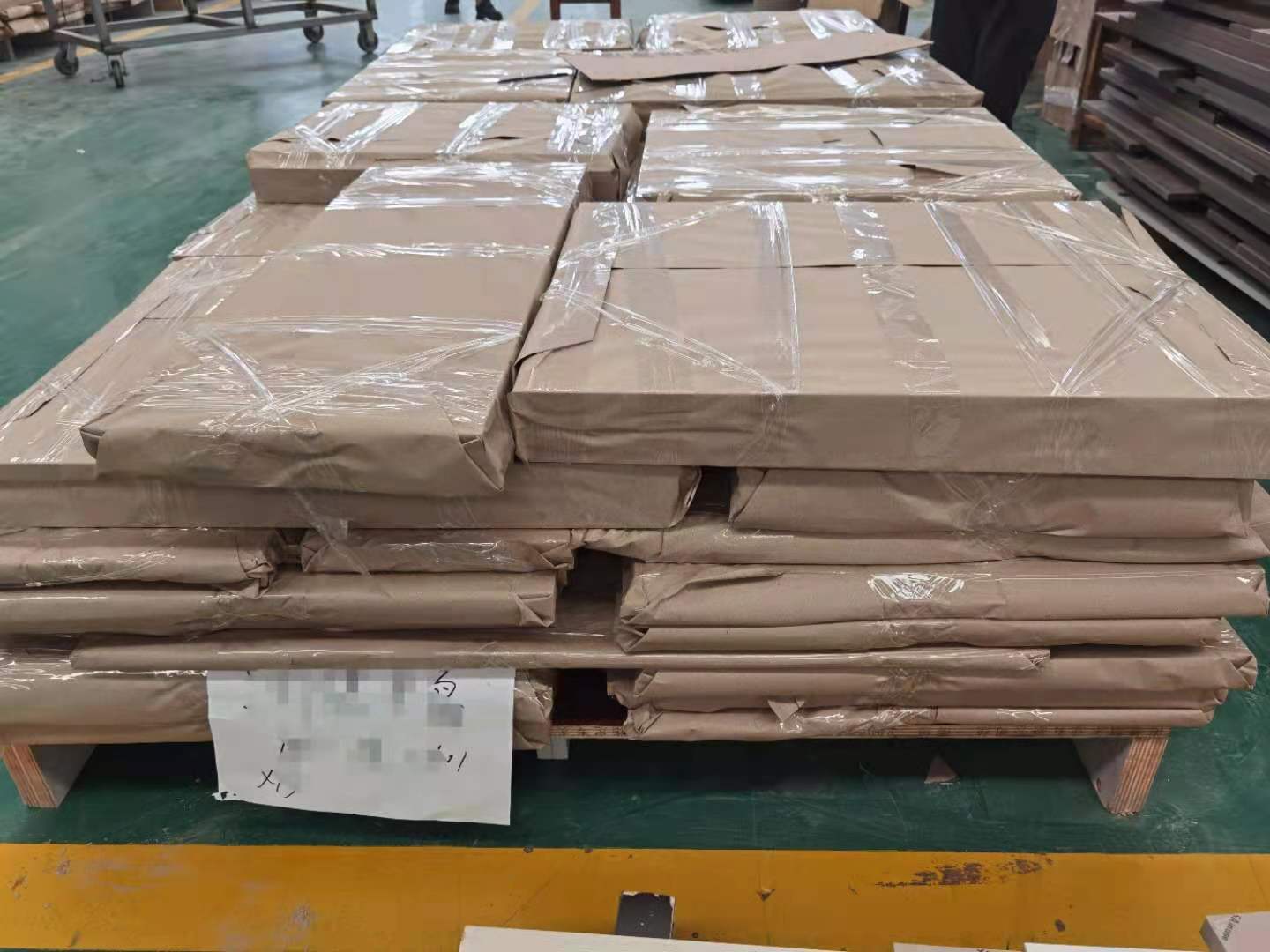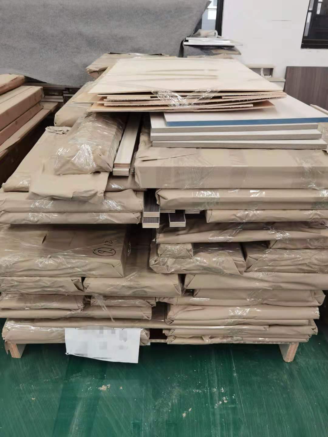 我家柜子每塊板都是整個打包起來的,以防運(yùn)輸過程中劃傷或者磕碰到,跟板材下面墊板一個原理哦!