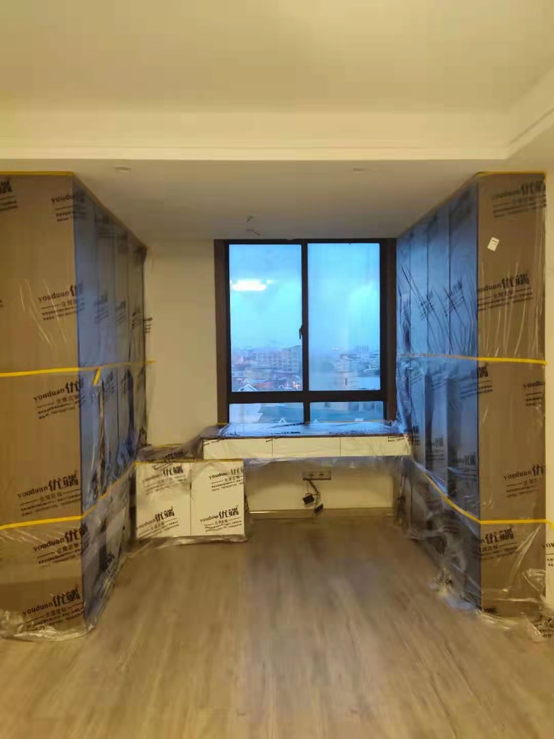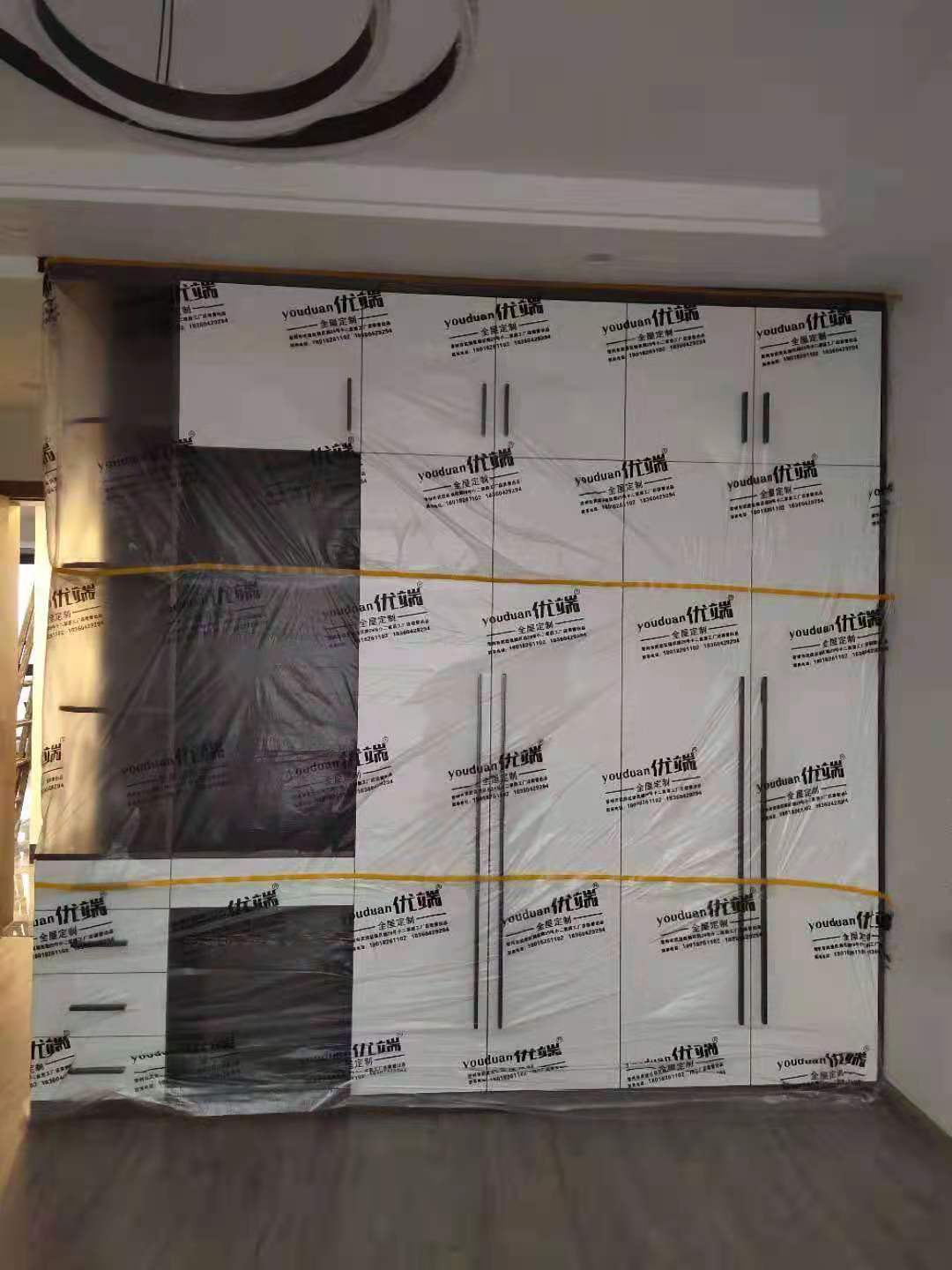 我們的柜子都用塑料膜保護(hù)起來了