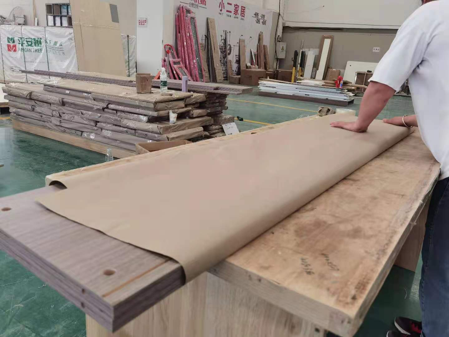 開始制作啦,專業(yè)設備裁板,板材使用平安樹實木多層E0級制作,有高級的藍光防偽標識哦,邊口都是直的,沒有爆邊的情況,這樣后面封出來的板更圓滑,全自動機器開料尺寸更精準,拆好的板材師傅都整整齊齊的放在墊板上,板下面都墊了墊板的哦,第一防止地面有東西劃傷,第二防潮。