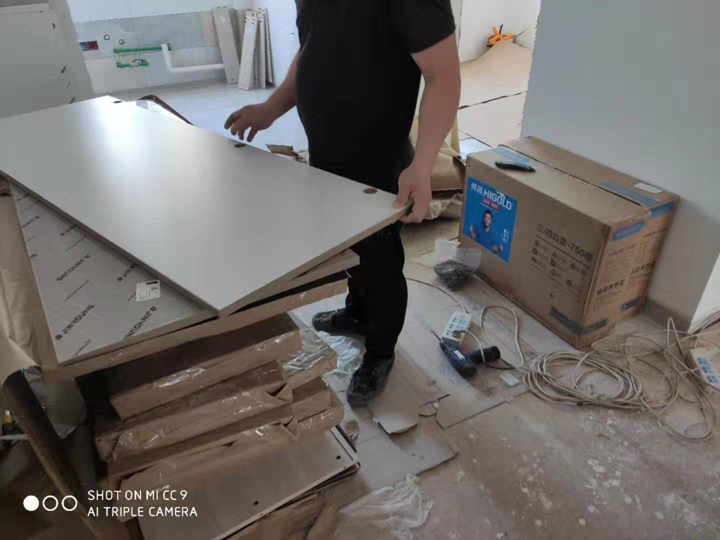 柜子安裝好后進(jìn)入臺(tái)面測量環(huán)節(jié),臺(tái)面量完后一個(gè)星期內(nèi)送貨并安裝。