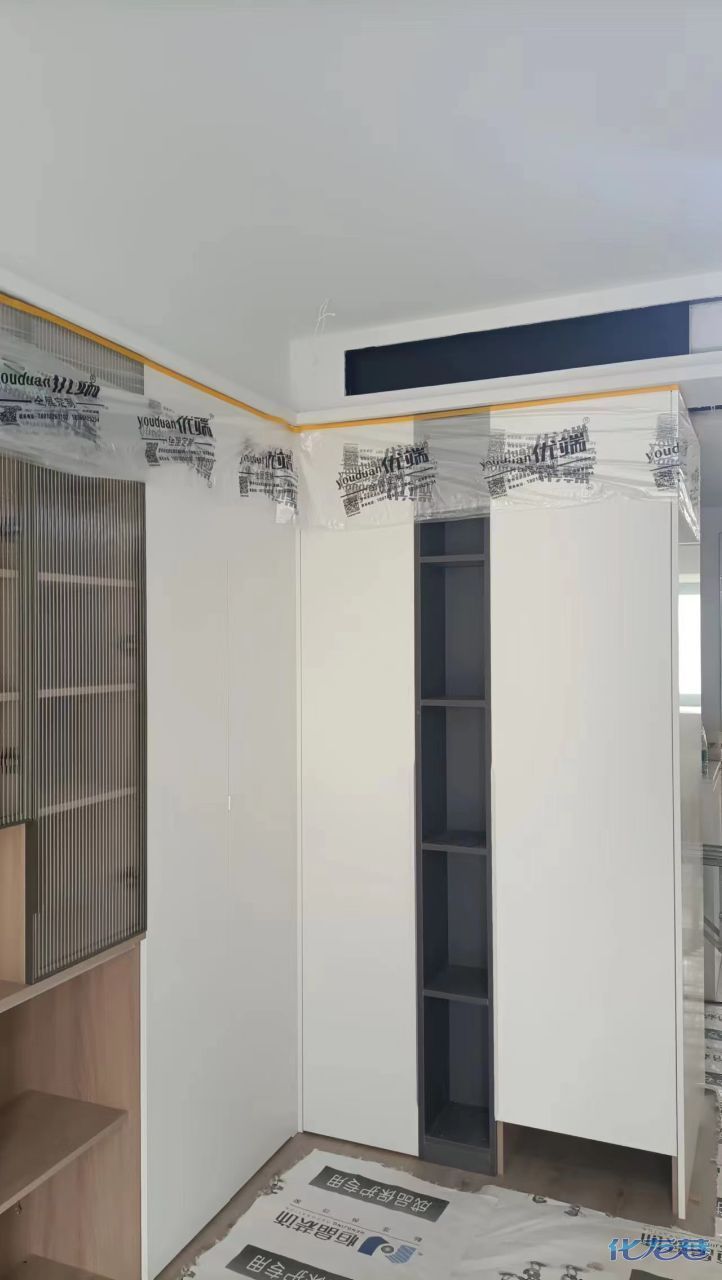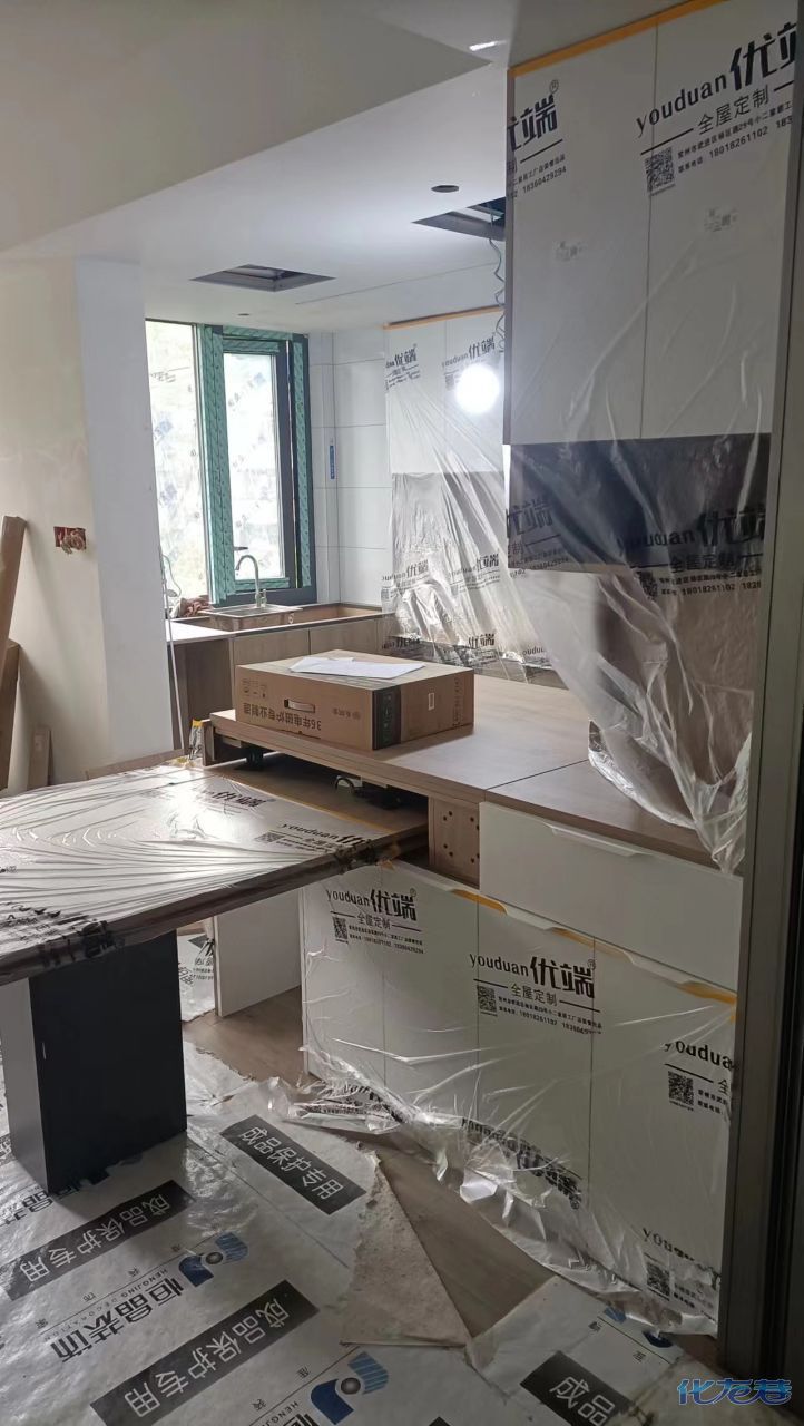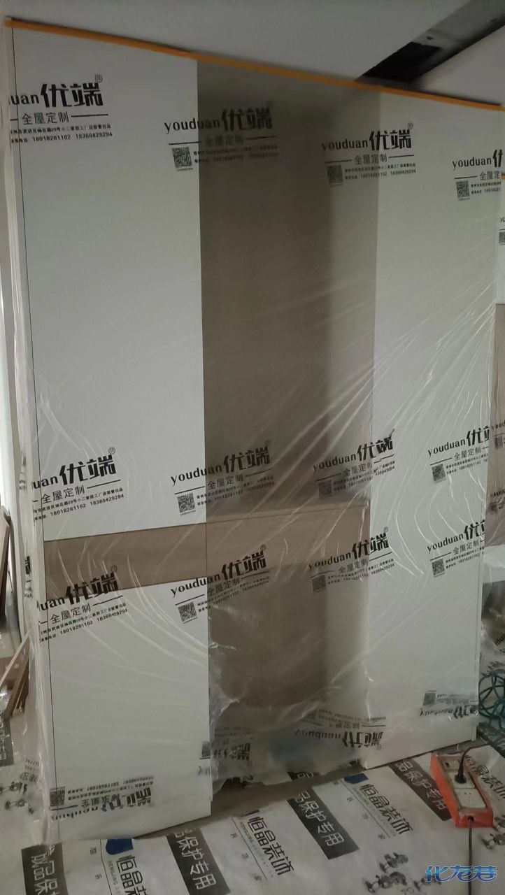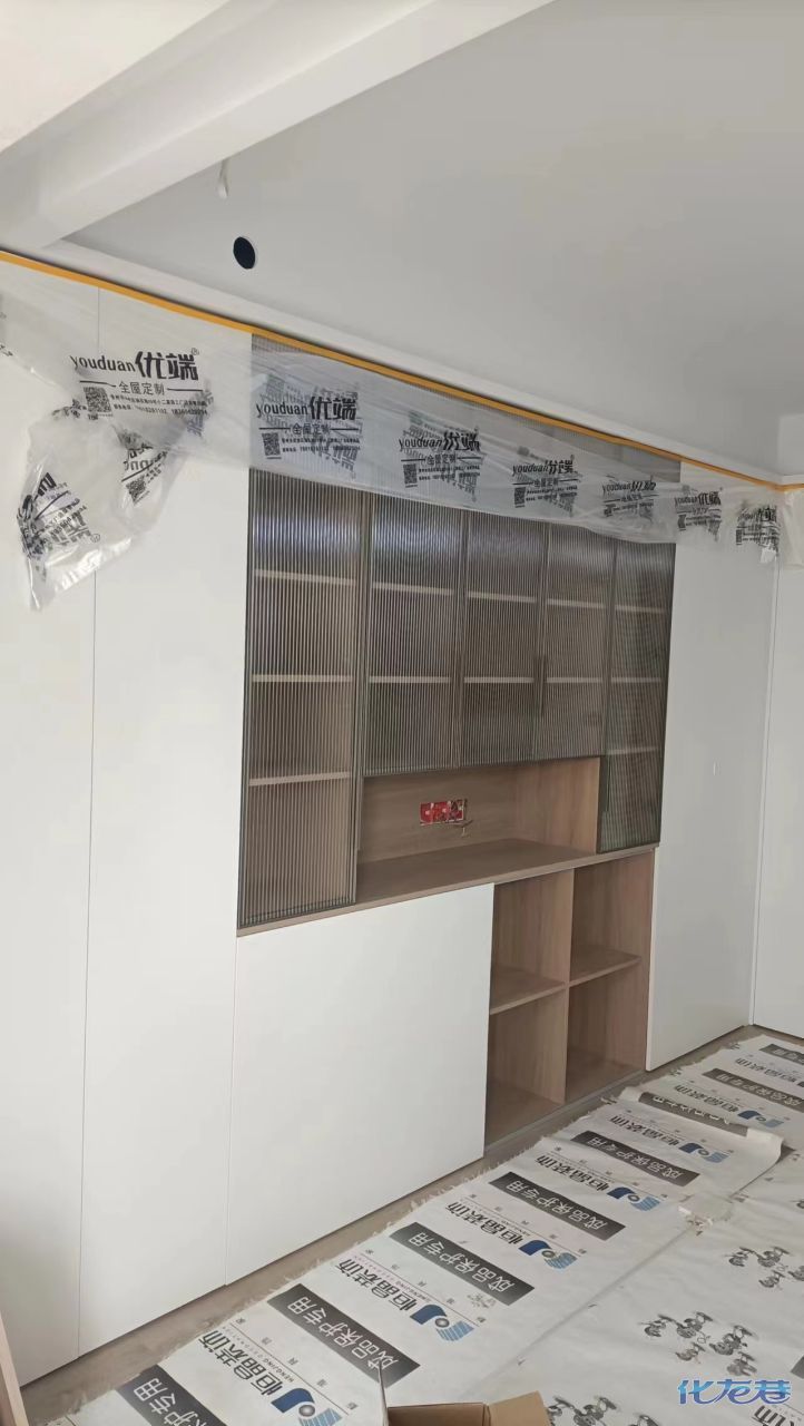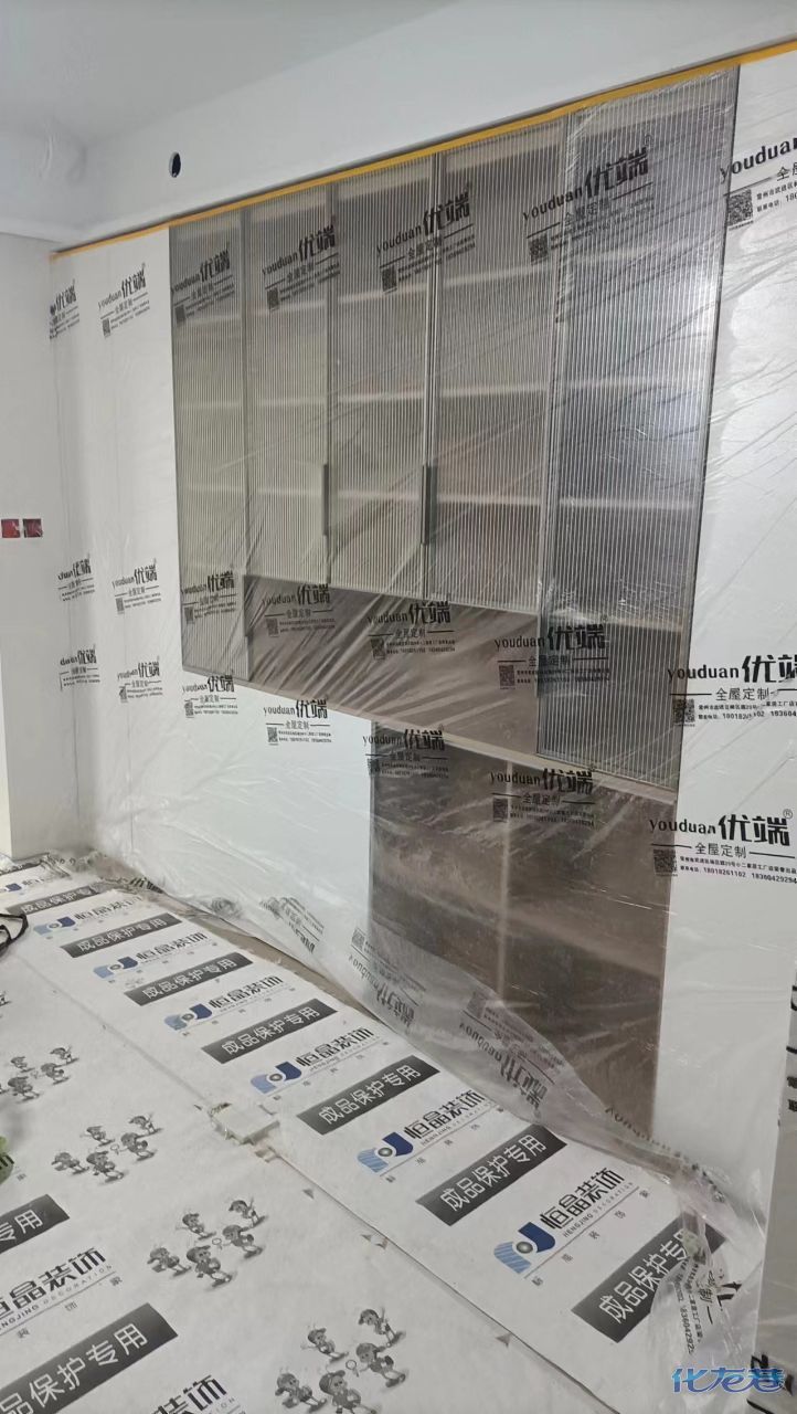 安裝完成的柜子都用塑料膜保護(hù)起來了