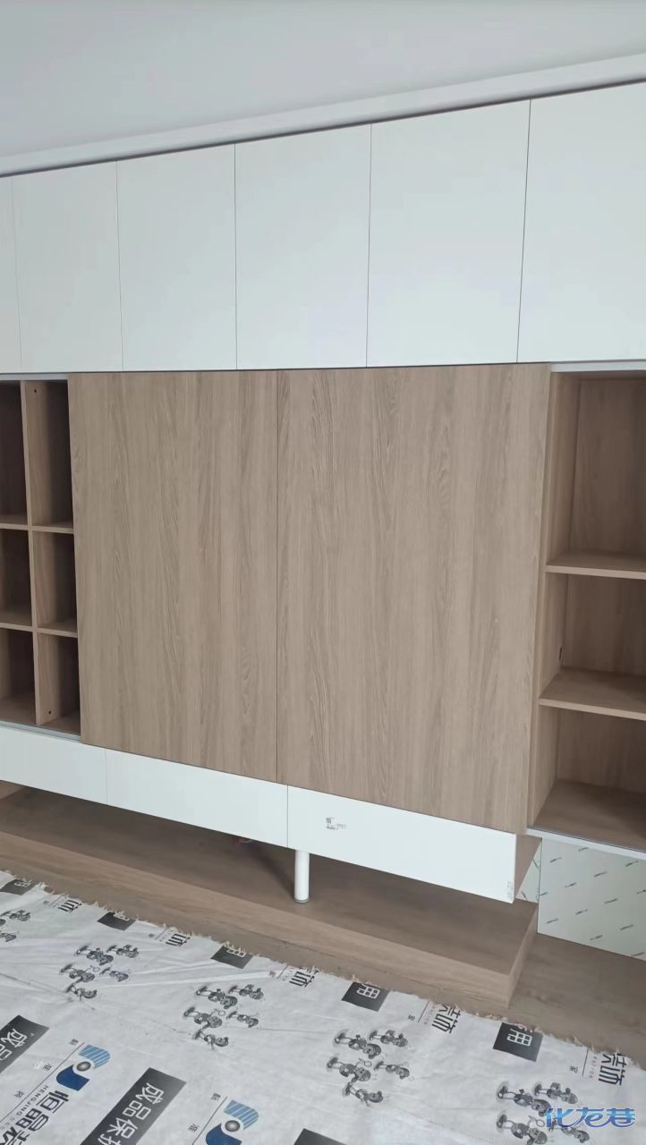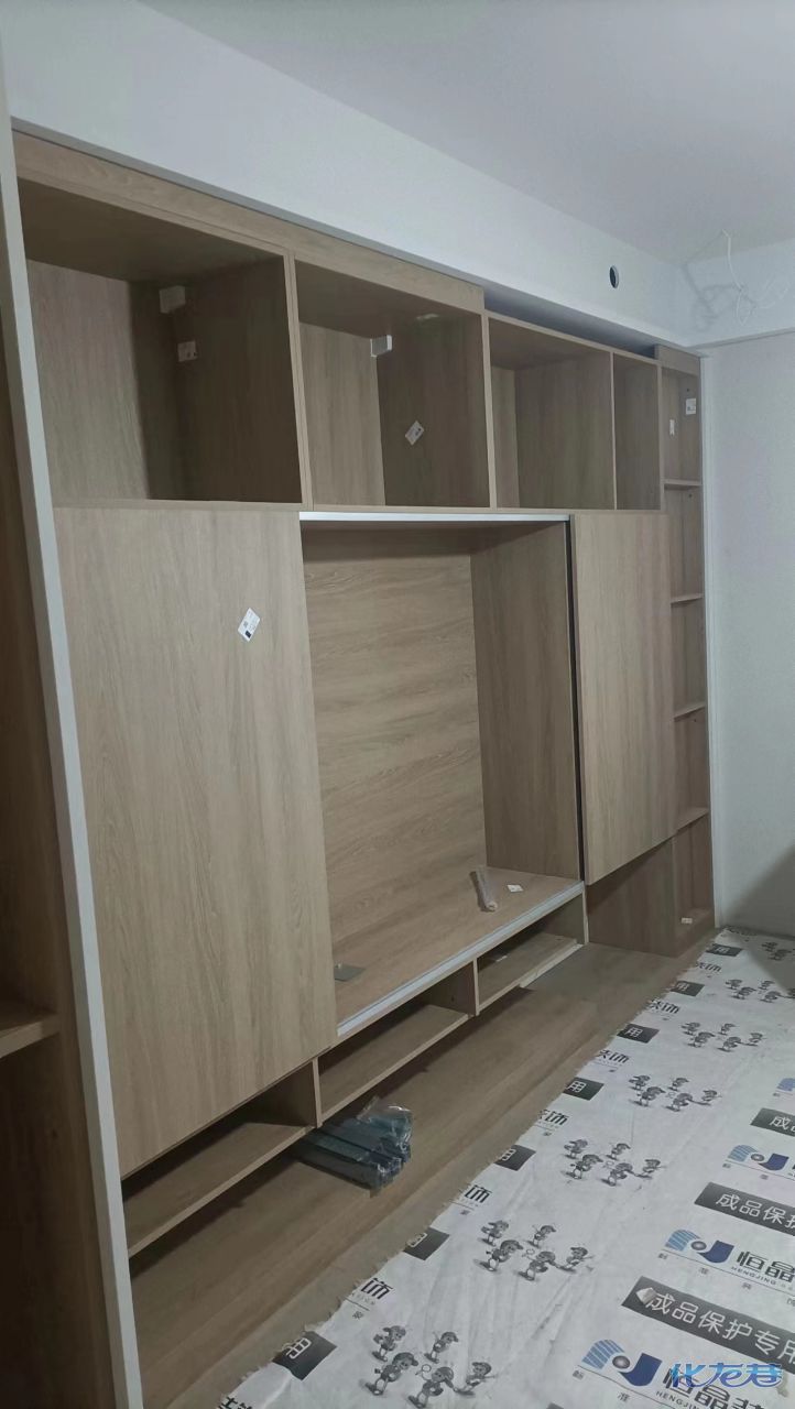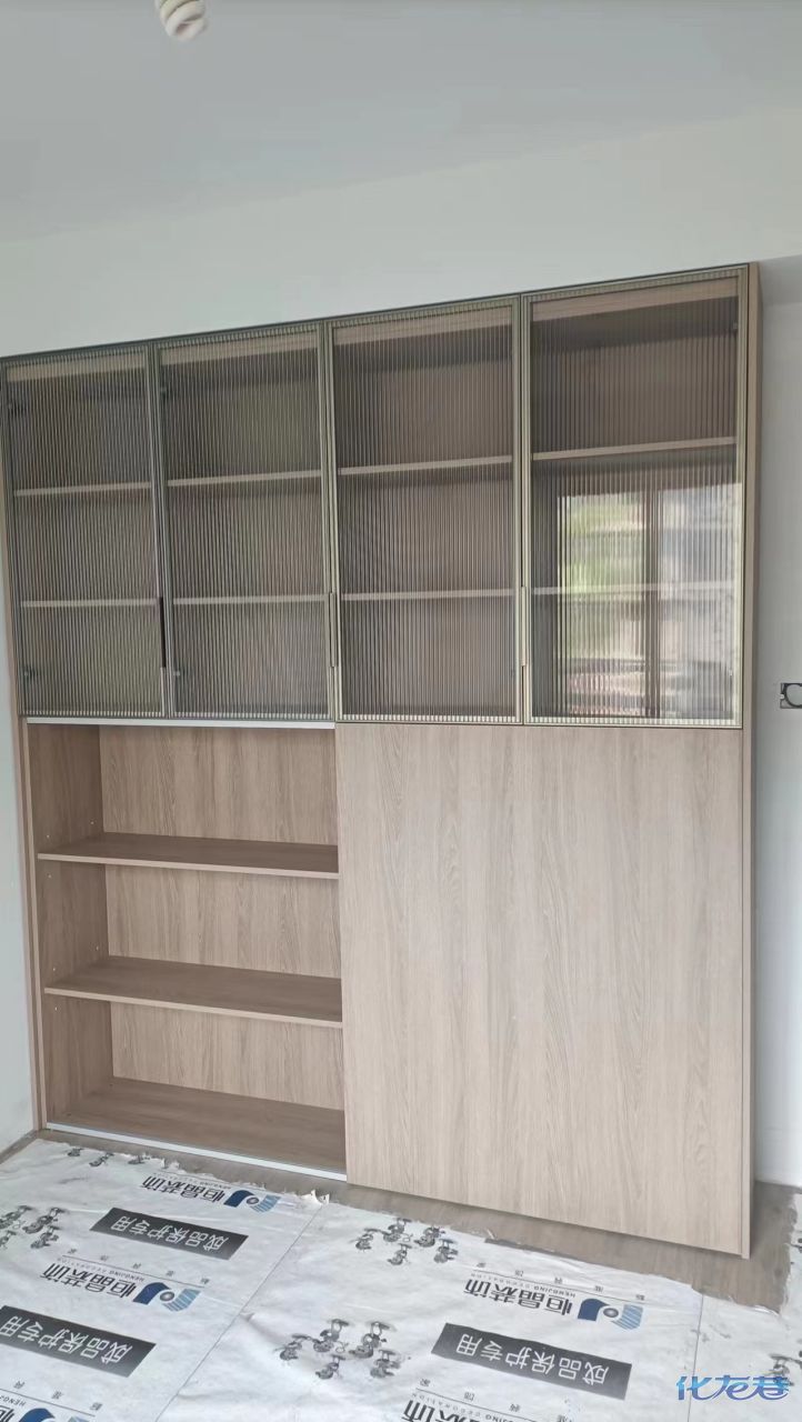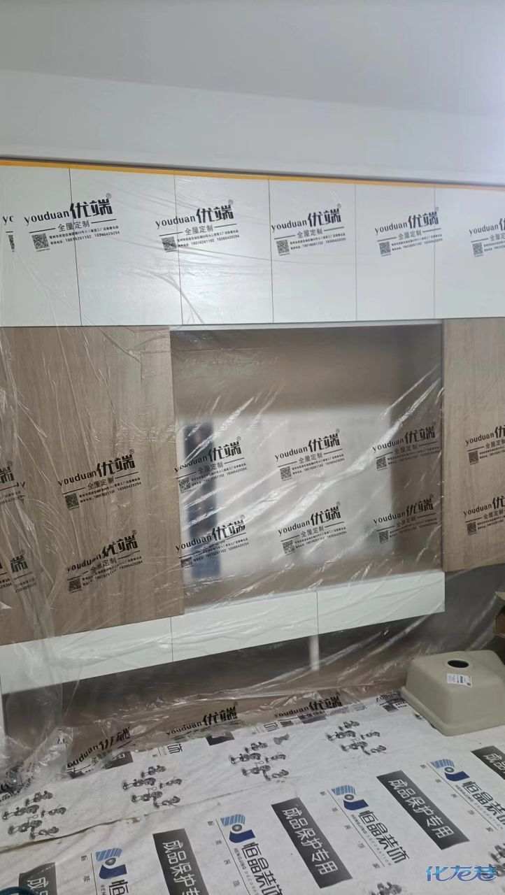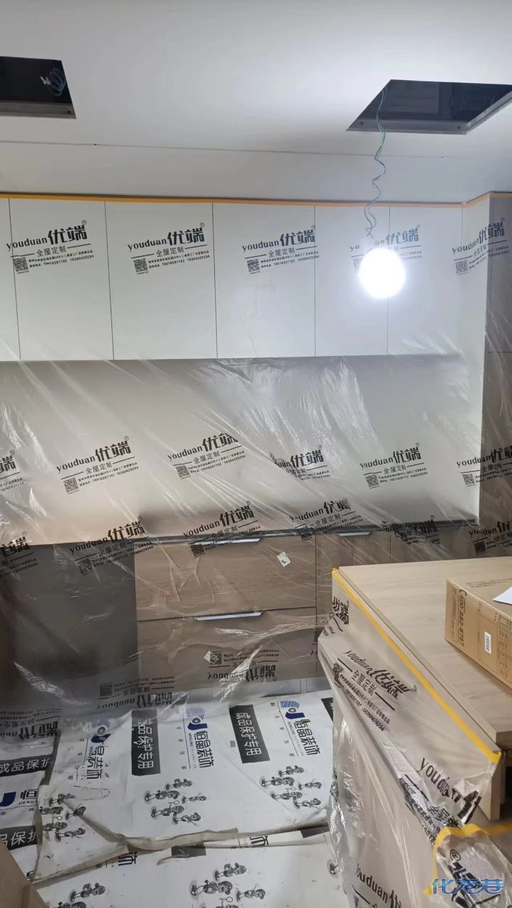 安裝完成的柜子都用塑料膜保護(hù)起來了