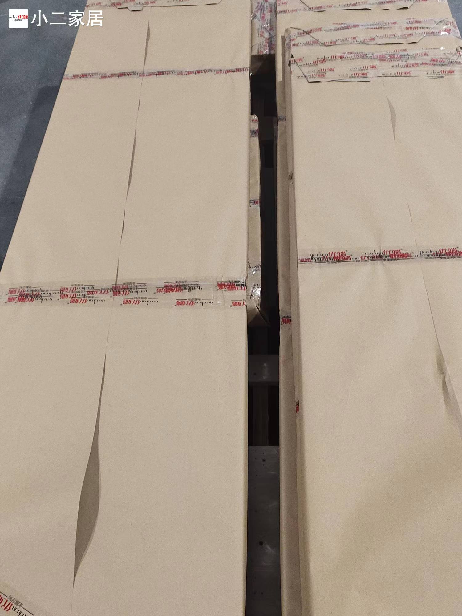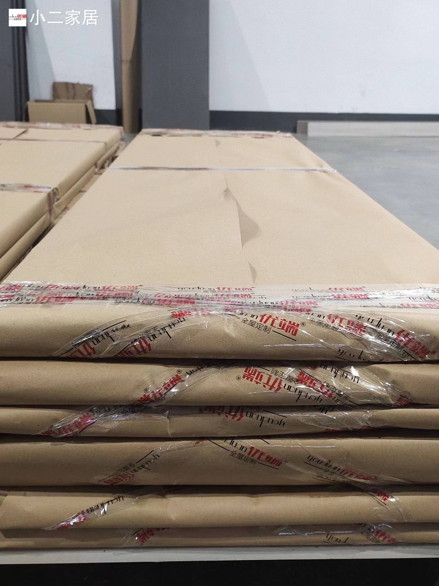 進(jìn)入打包環(huán)節(jié),我家柜子每塊板都是整個(gè)打包起來(lái)的,以防運(yùn)輸過(guò)程中劃傷或者磕碰到,跟板材下面墊板一個(gè)原理哦!重新訂板會(huì)存在色差,這是重點(diǎn),圈起來(lái)必考。全部打包好就可以聯(lián)系客戶送貨咯!