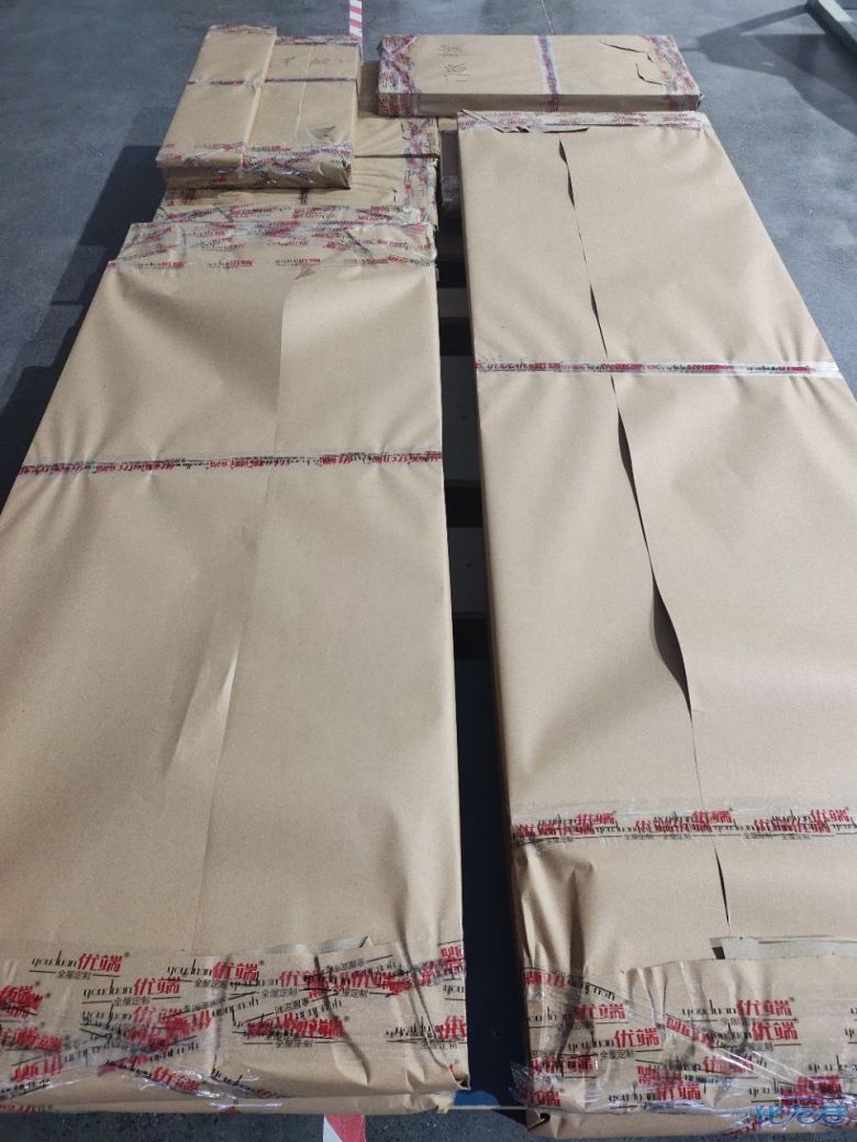 進(jìn)入打包環(huán)節(jié),我家柜子每塊板都是整個(gè)打包起來的,以防運(yùn)輸過程中劃傷或者磕碰到,跟板材下面墊板一個(gè)原理哦!重新訂板會(huì)存在色差,這是重點(diǎn),圈起來必考。全部打包好就可以聯(lián)系客戶送貨咯!
