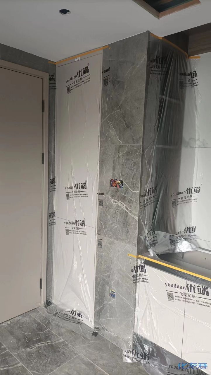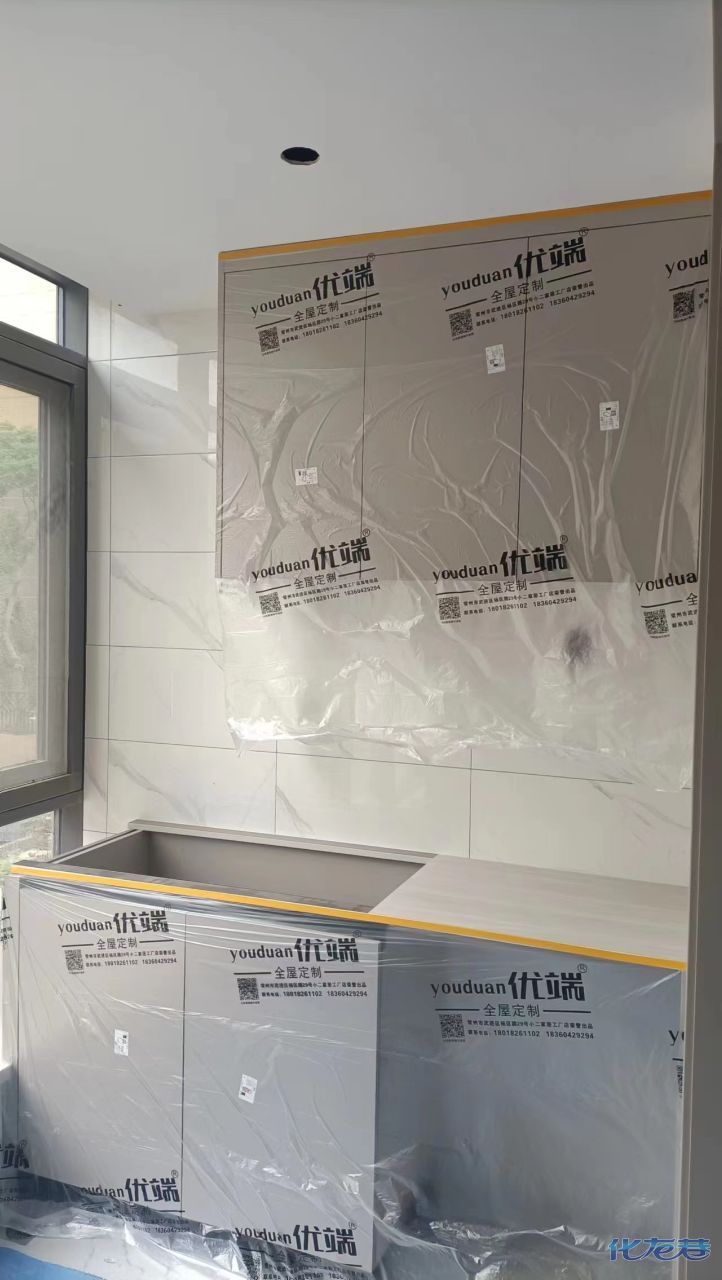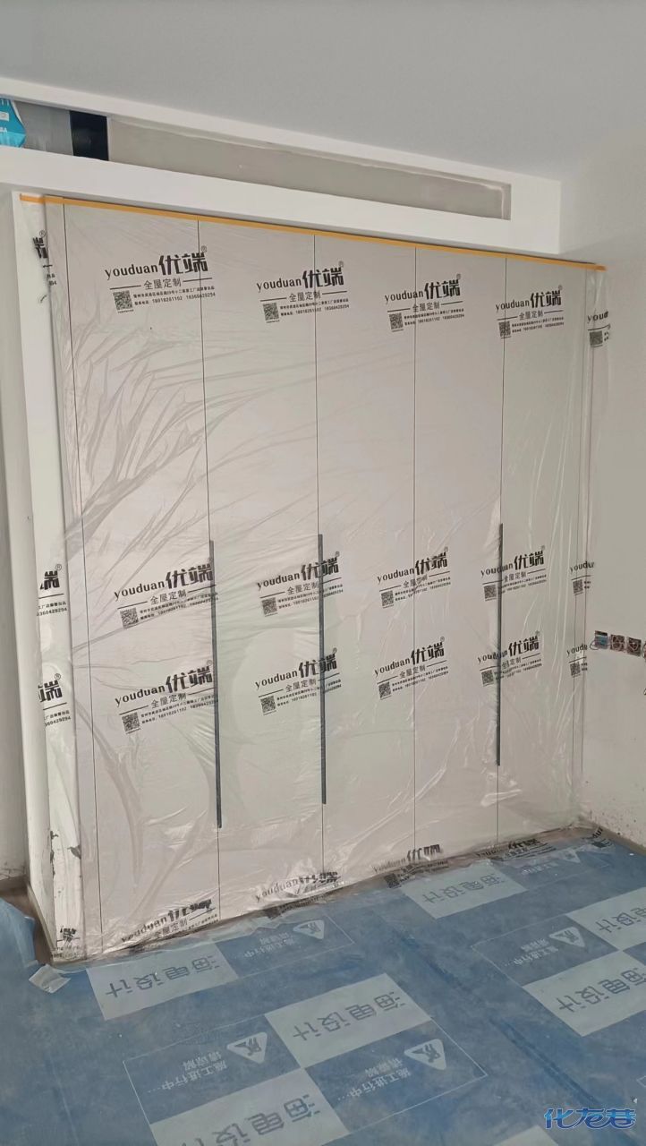 安裝完成的柜子都用塑料膜保護(hù)起來了