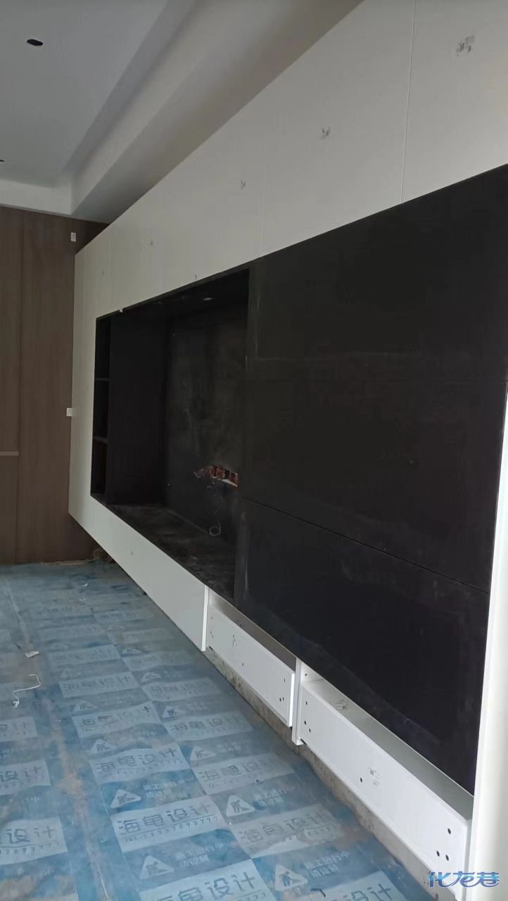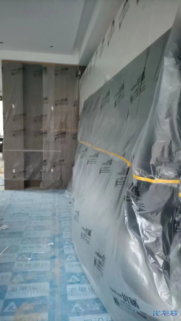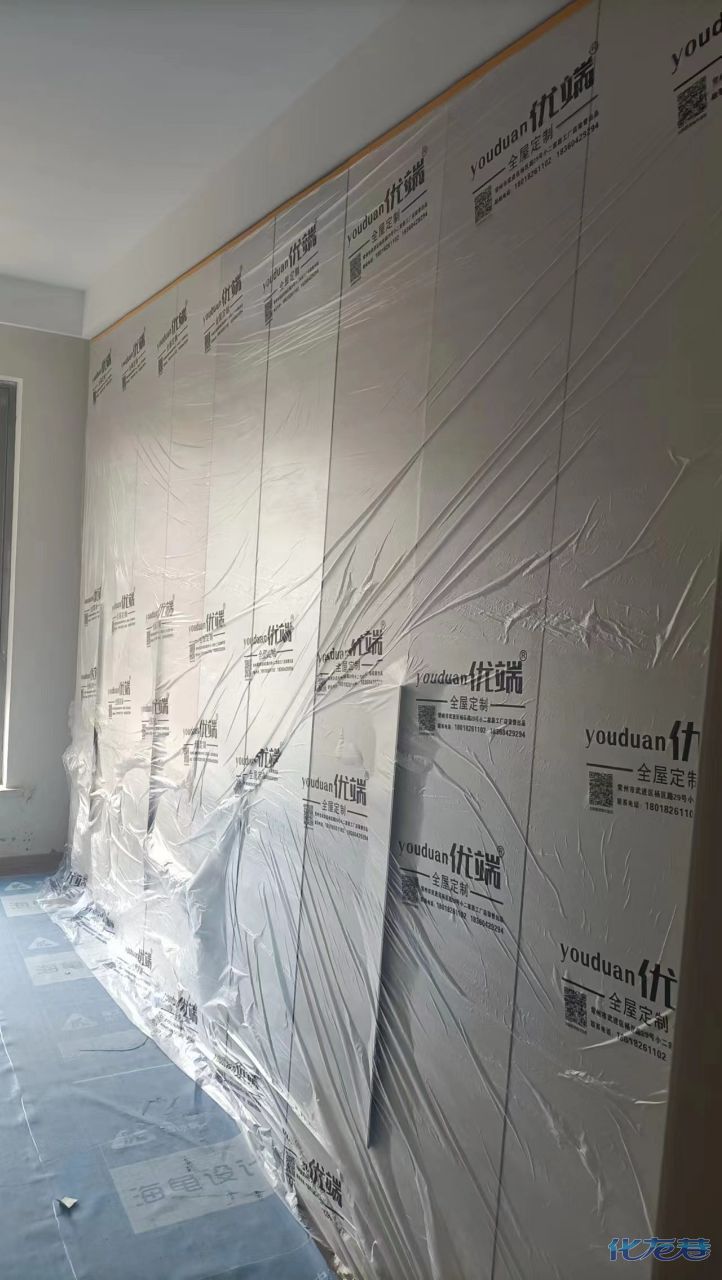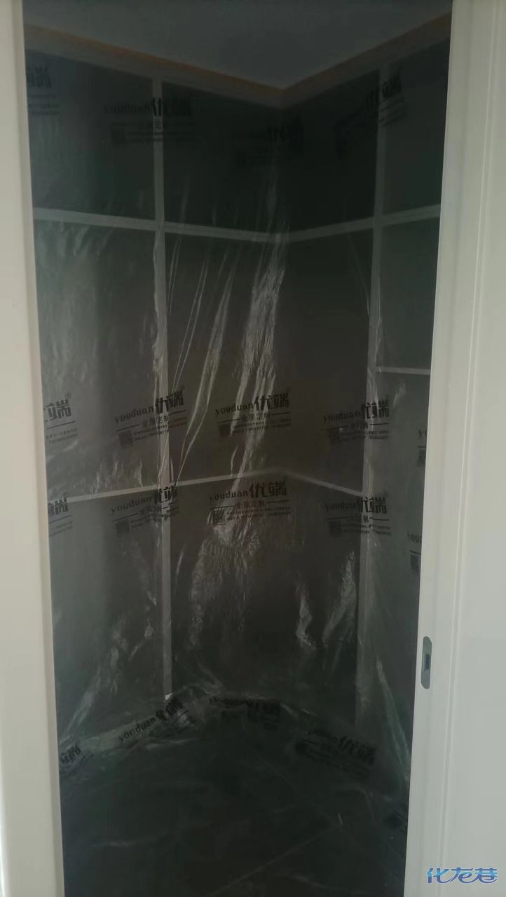 安裝完成的柜子都用塑料膜保護(hù)起來了