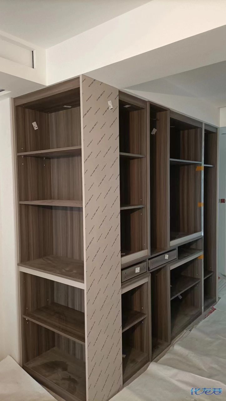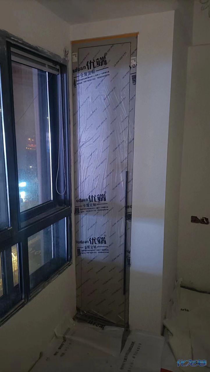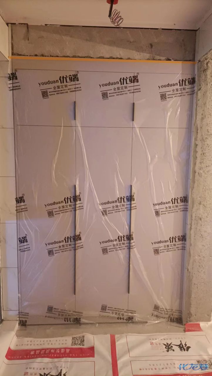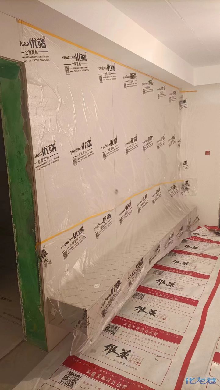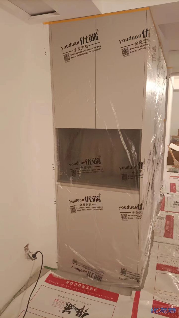 安裝完成的柜子都用塑料膜保護起來了