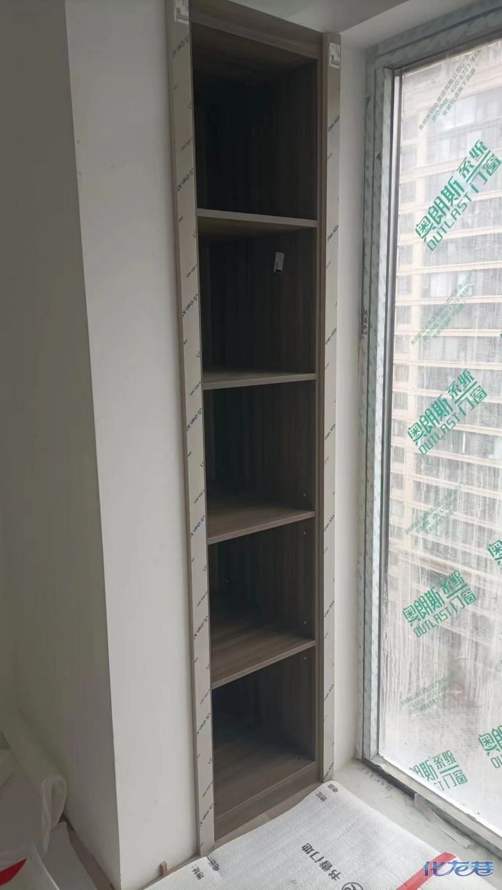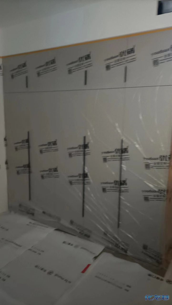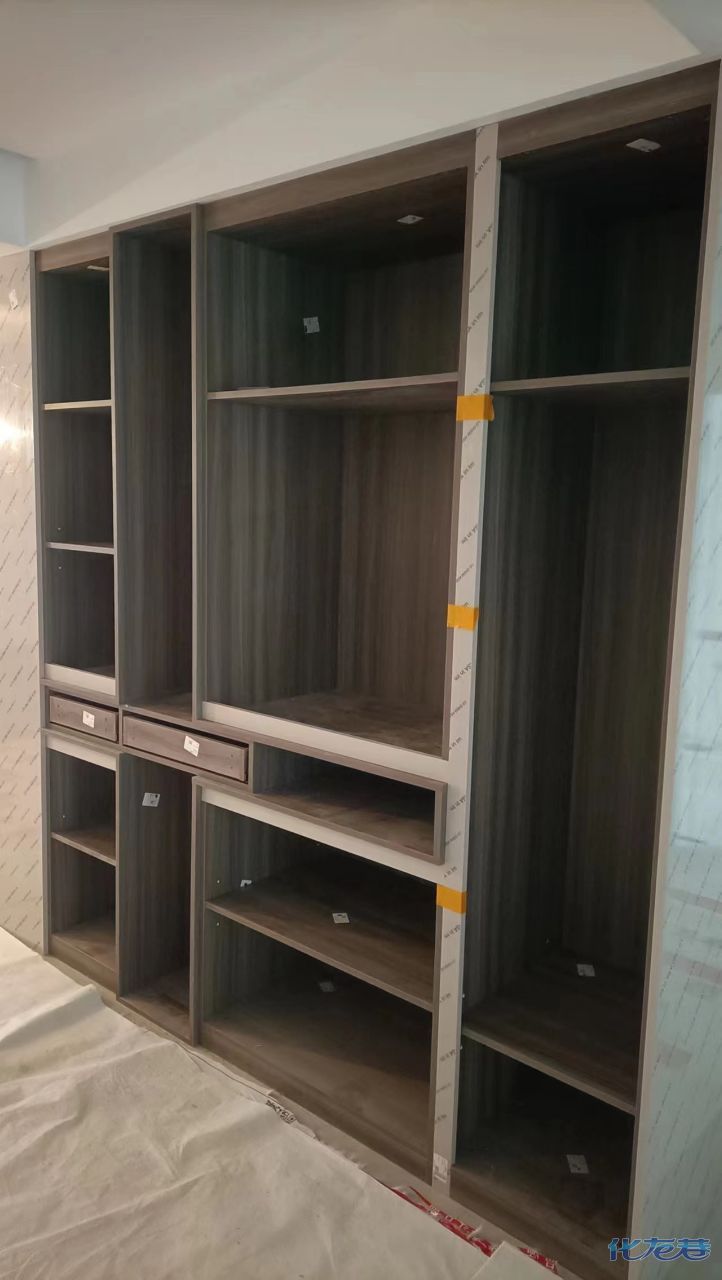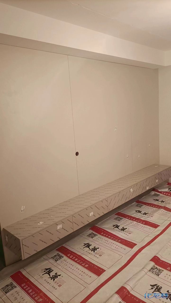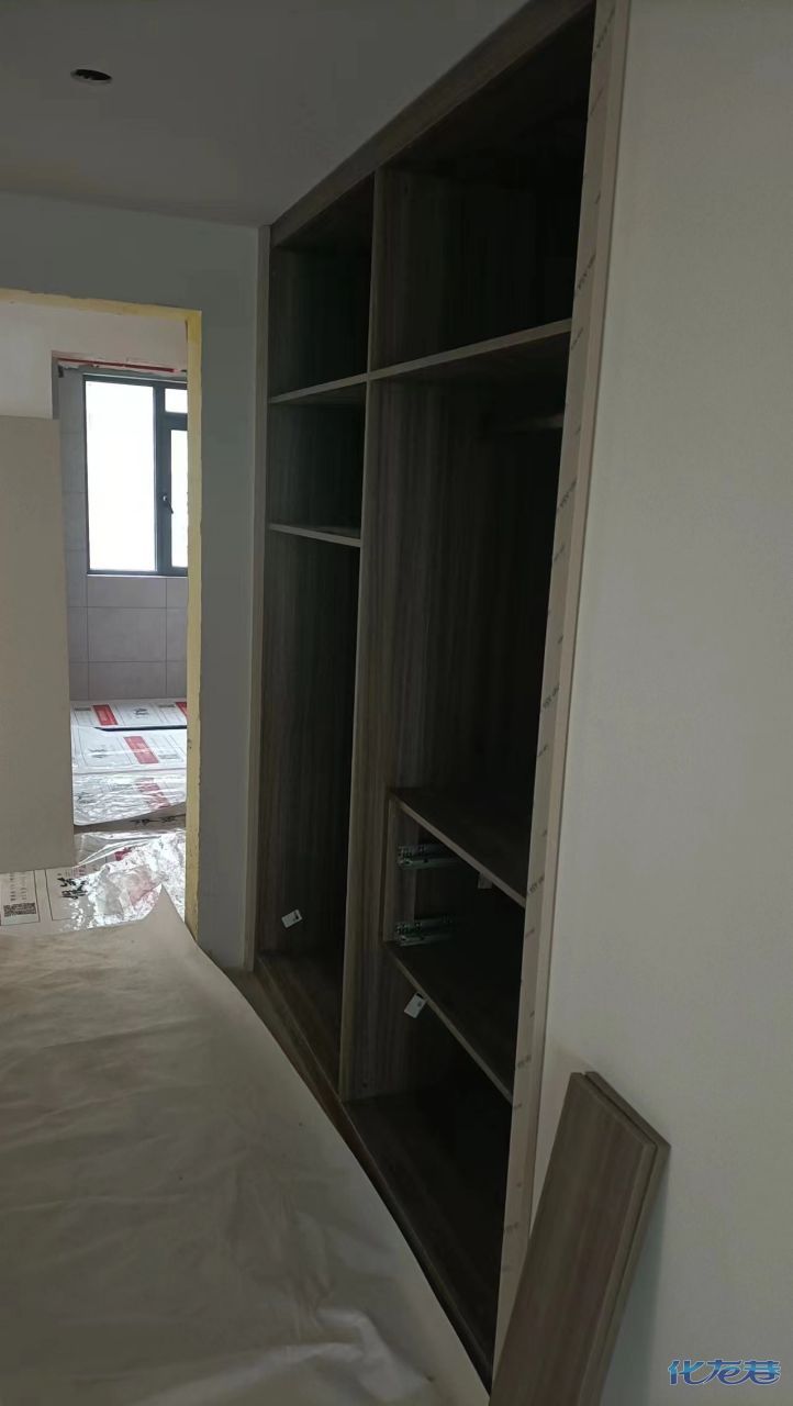 安裝完成的柜子都用塑料膜保護起來了