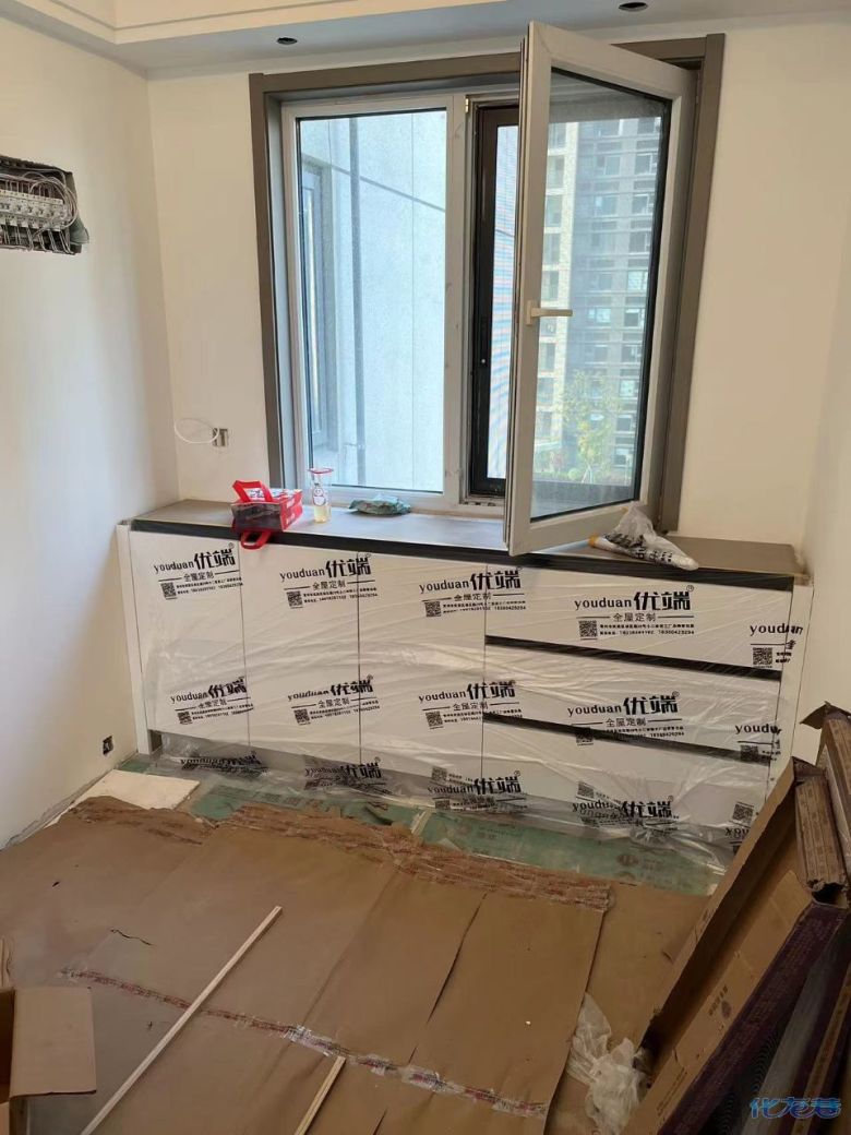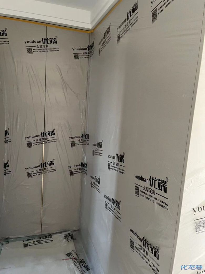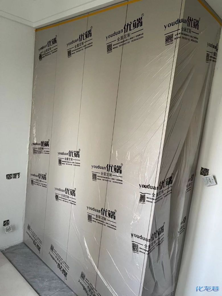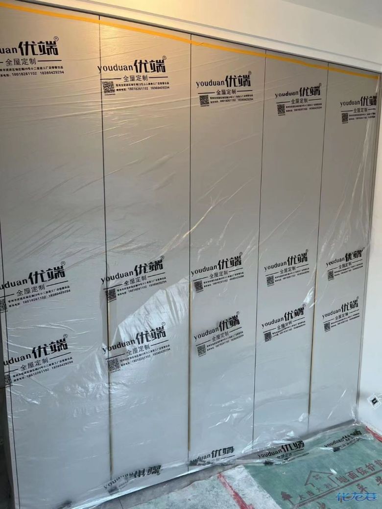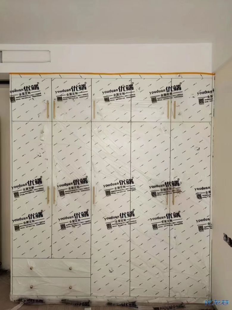 安裝完成的柜子都用塑料膜保護起來了
