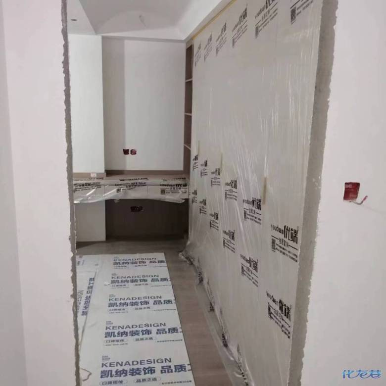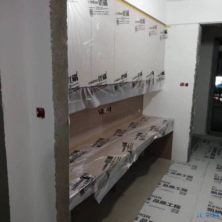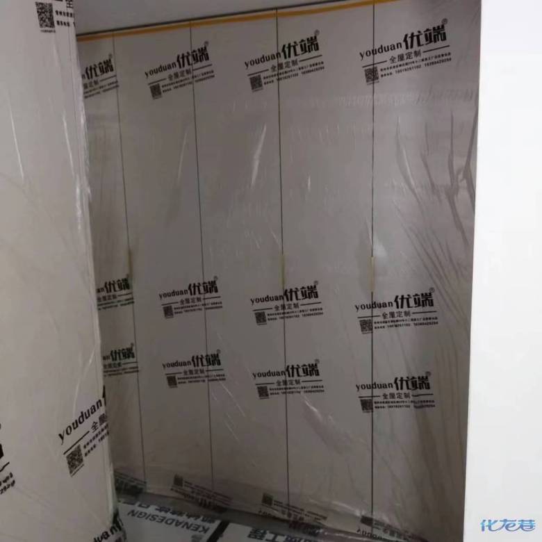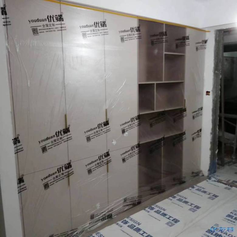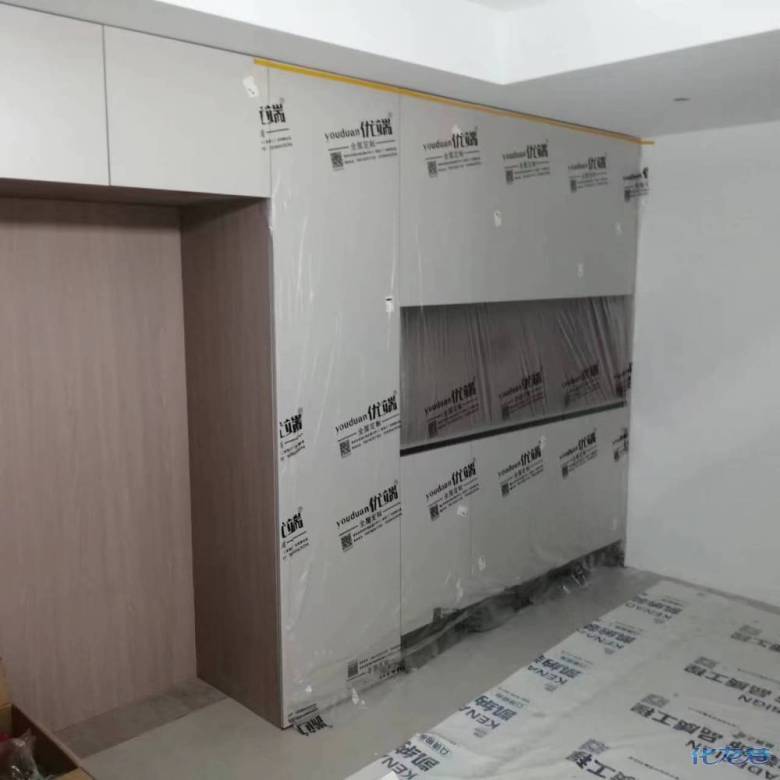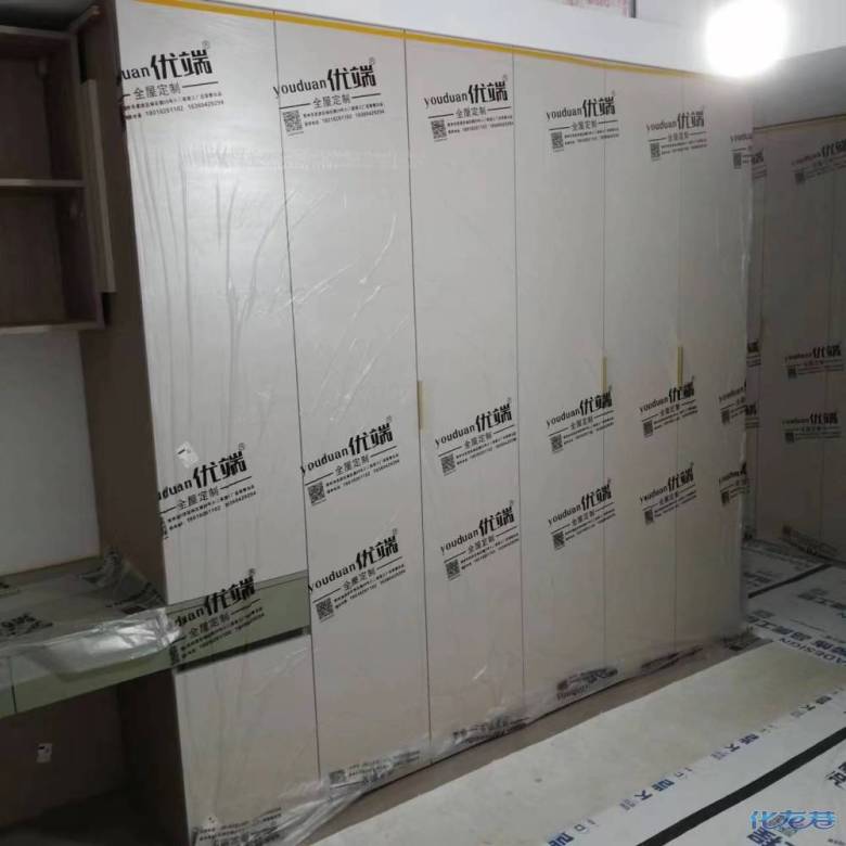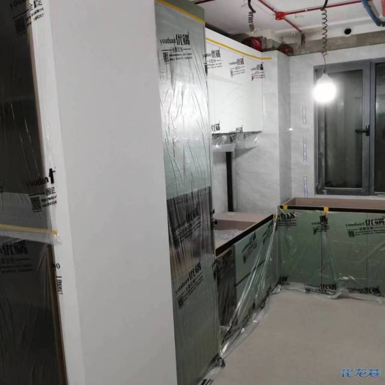 安裝完成的柜子都用塑料膜保護(hù)起來(lái)了
