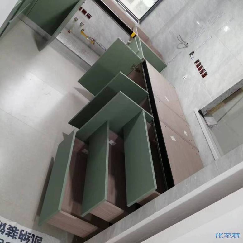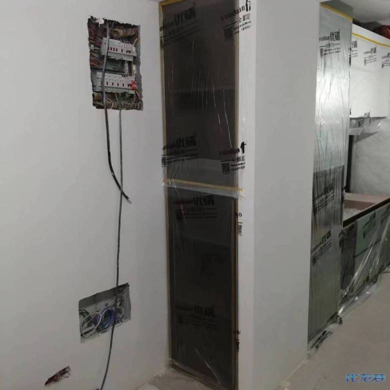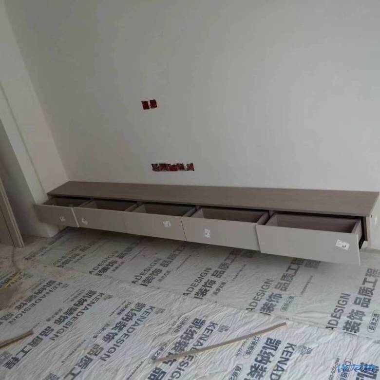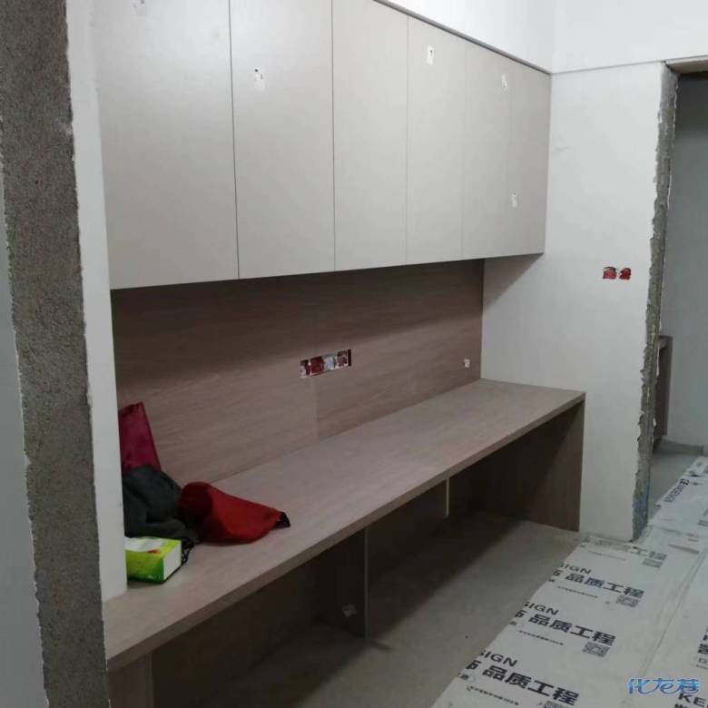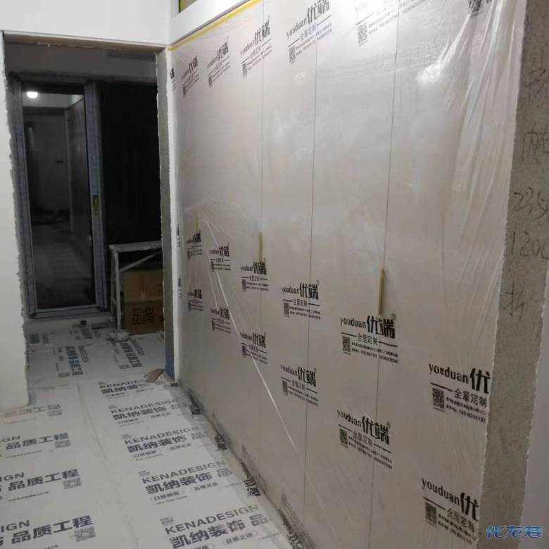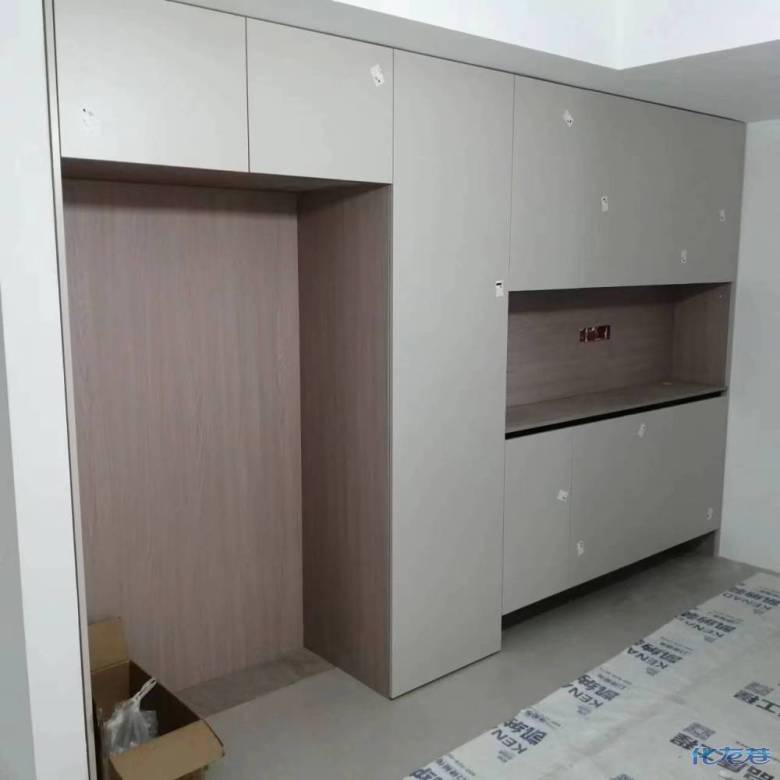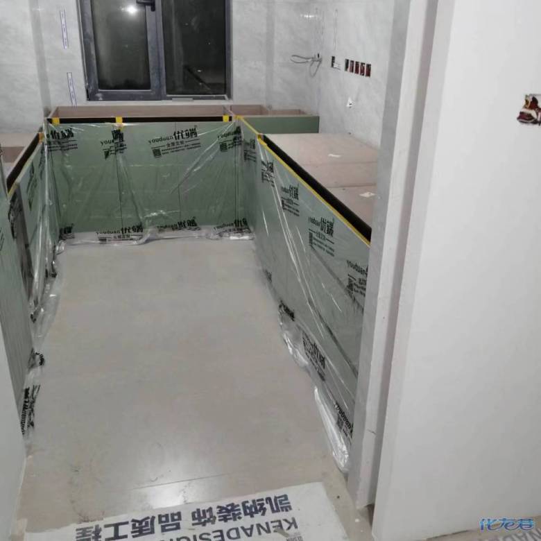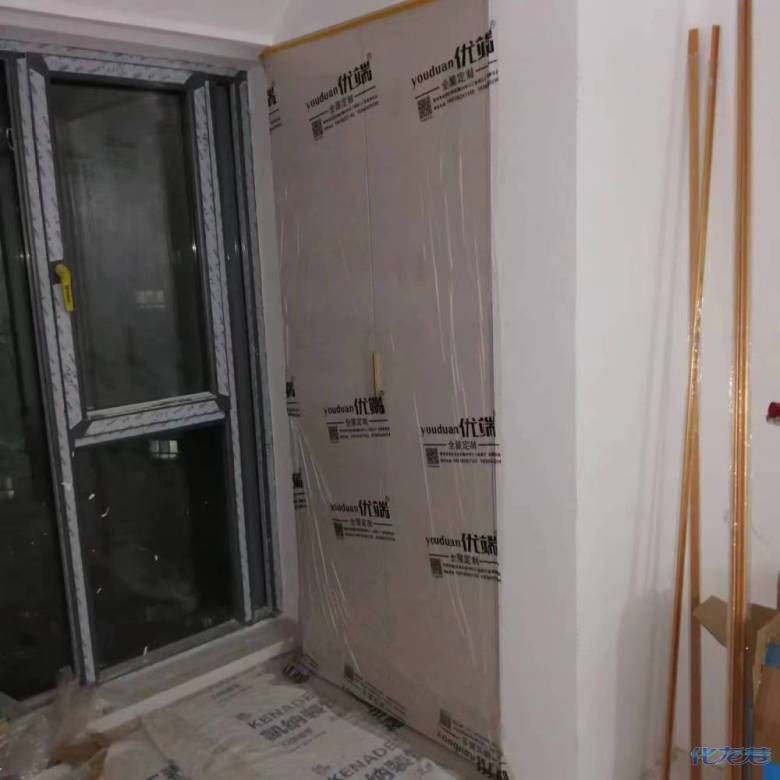 安裝完成的柜子都用塑料膜保護(hù)起來(lái)了