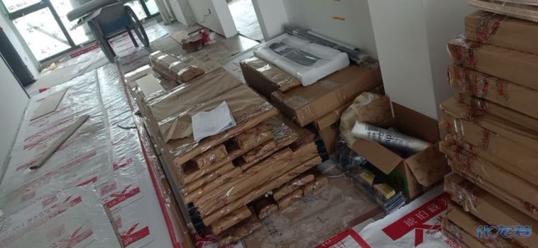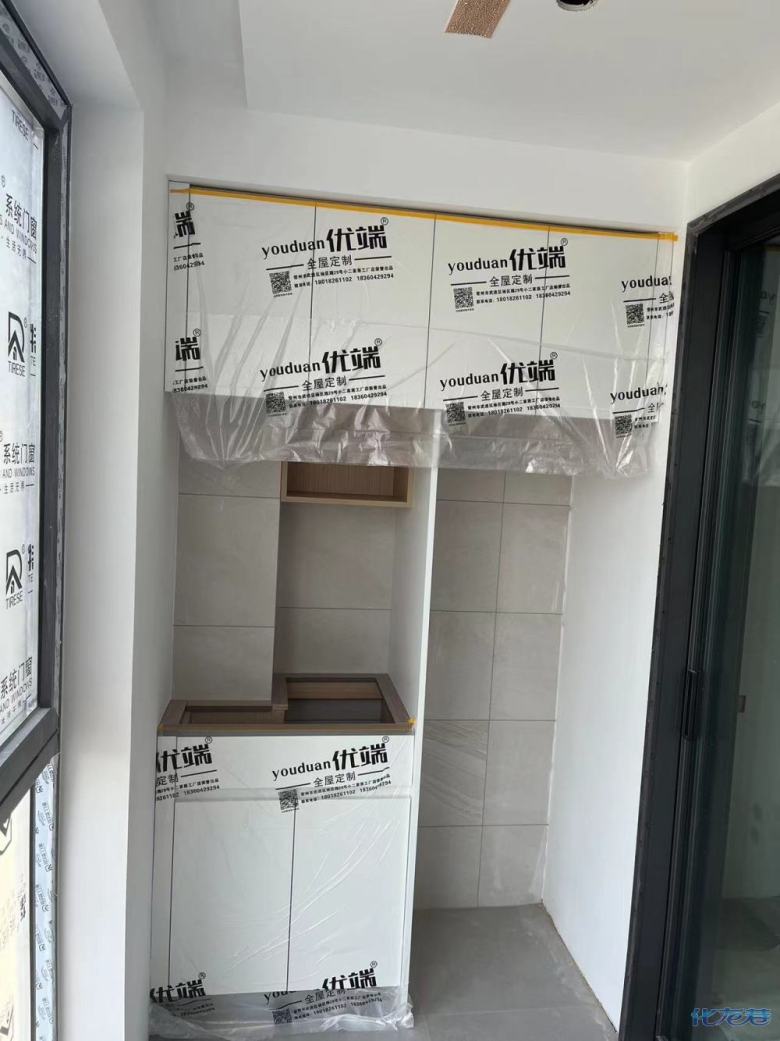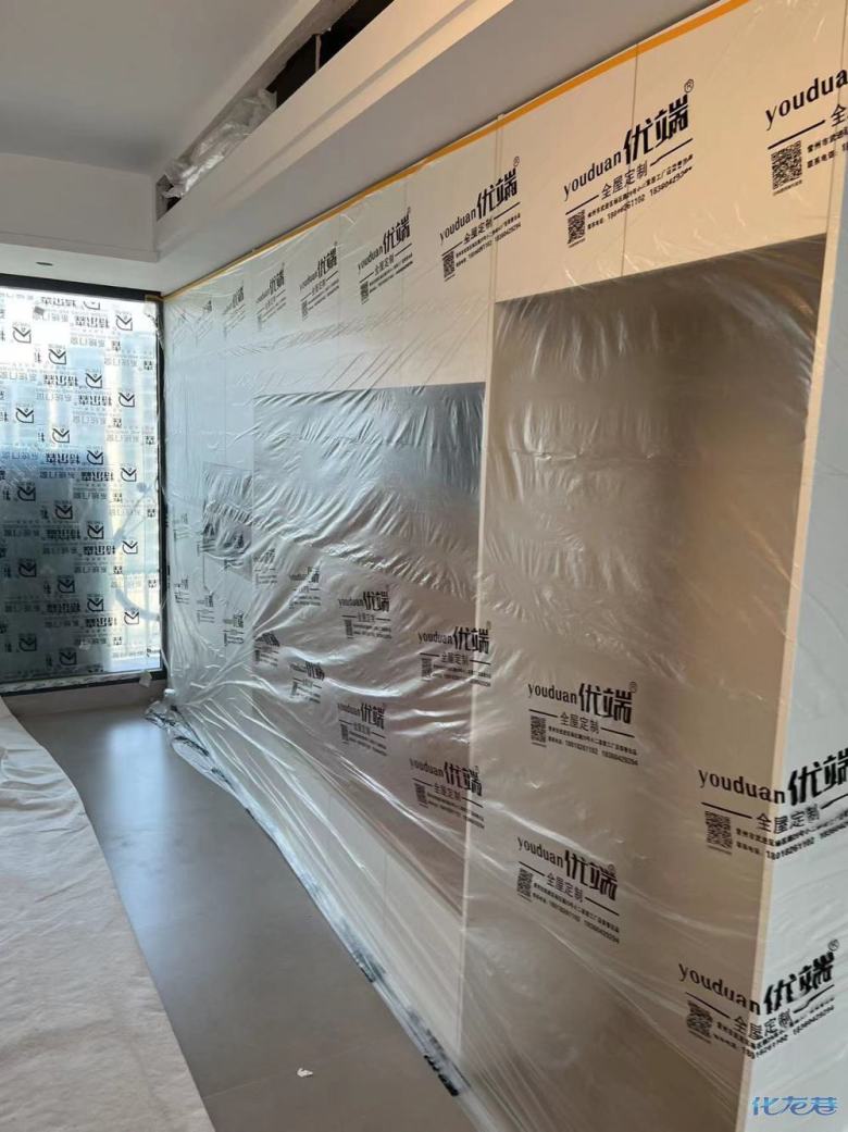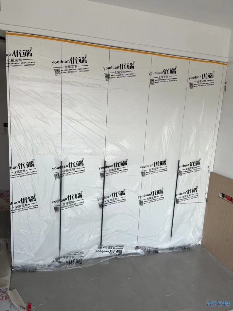 安裝完成的柜子都用塑料膜保護起來了
