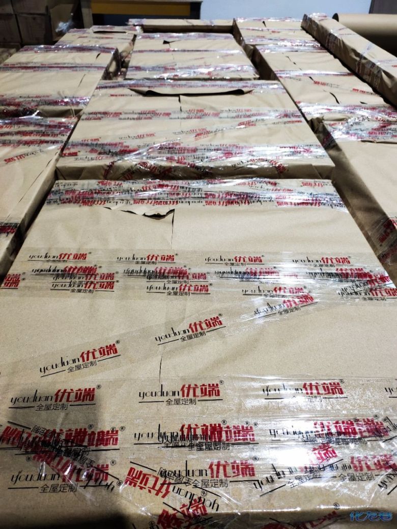 進(jìn)入打包環(huán)節(jié),我家柜子每塊板都是整個(gè)打包起來(lái)的,以防運(yùn)輸過(guò)程中劃傷或者磕碰到,跟板材下面墊板一個(gè)原理哦!重新訂板會(huì)存在色差,這是重點(diǎn),圈起來(lái)必考。全部打包好就可以聯(lián)系客戶(hù)送貨咯!