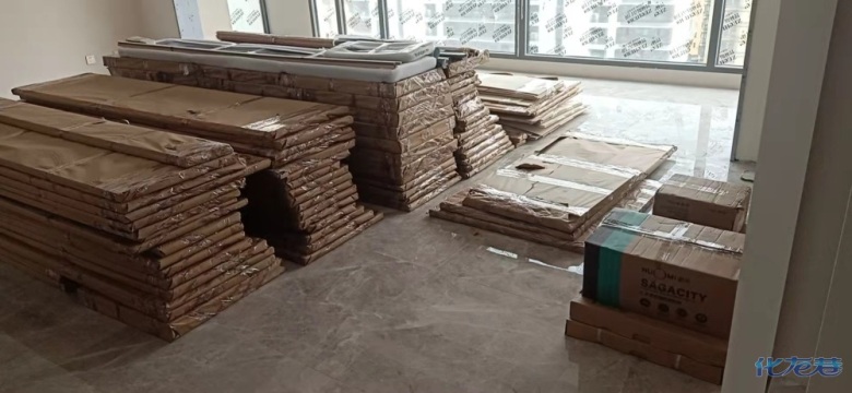 安裝完成的柜子都用塑料膜保護(hù)起來了