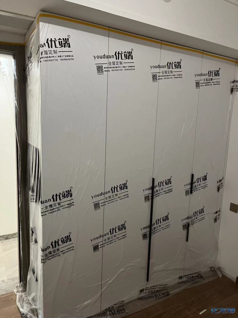 安裝完成的柜子都用塑料膜保護(hù)起來(lái)了