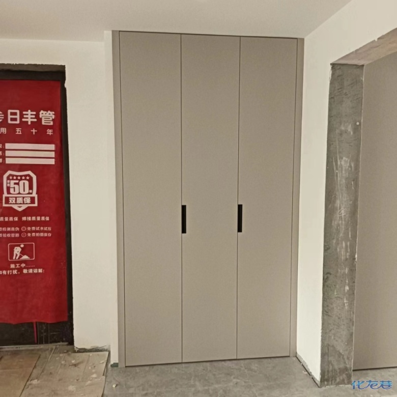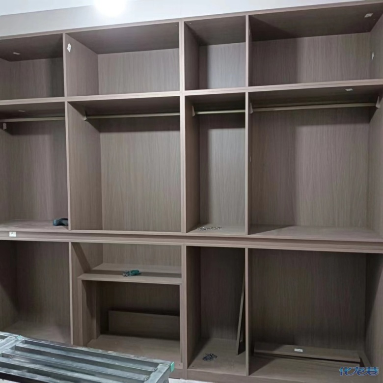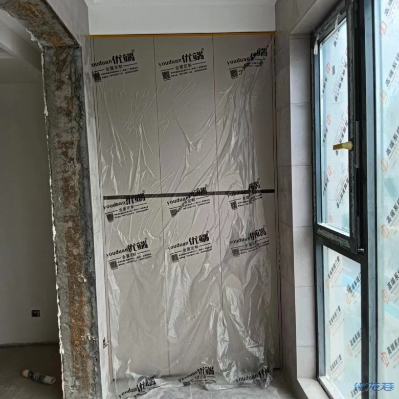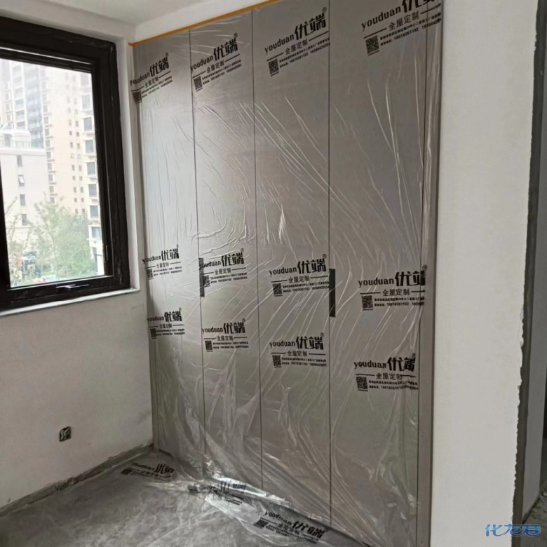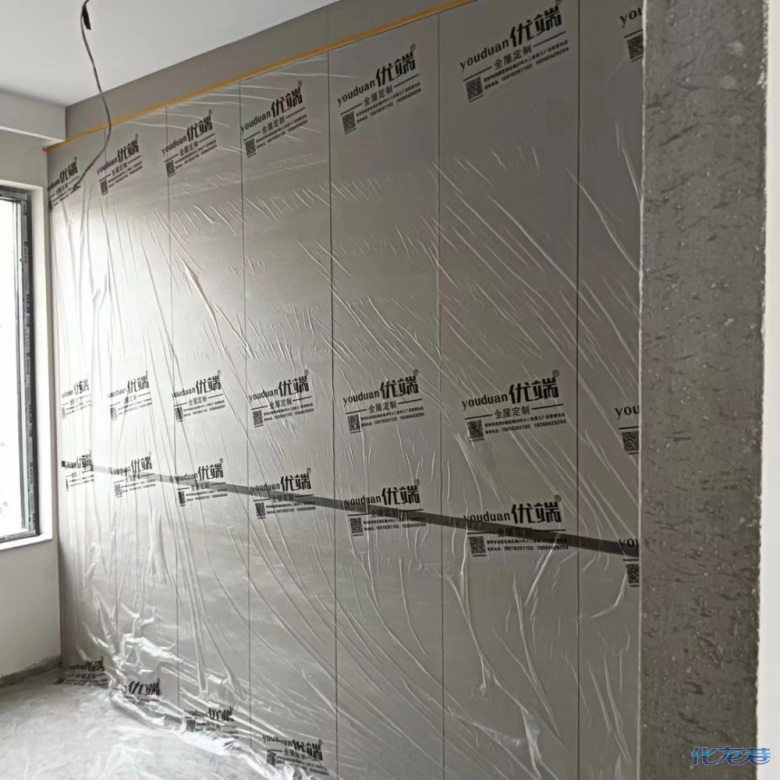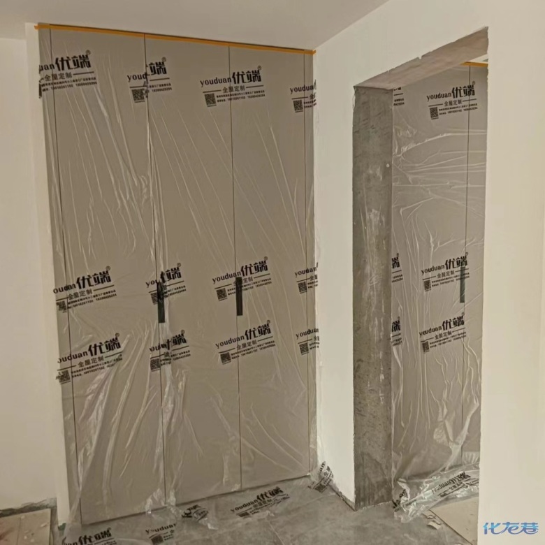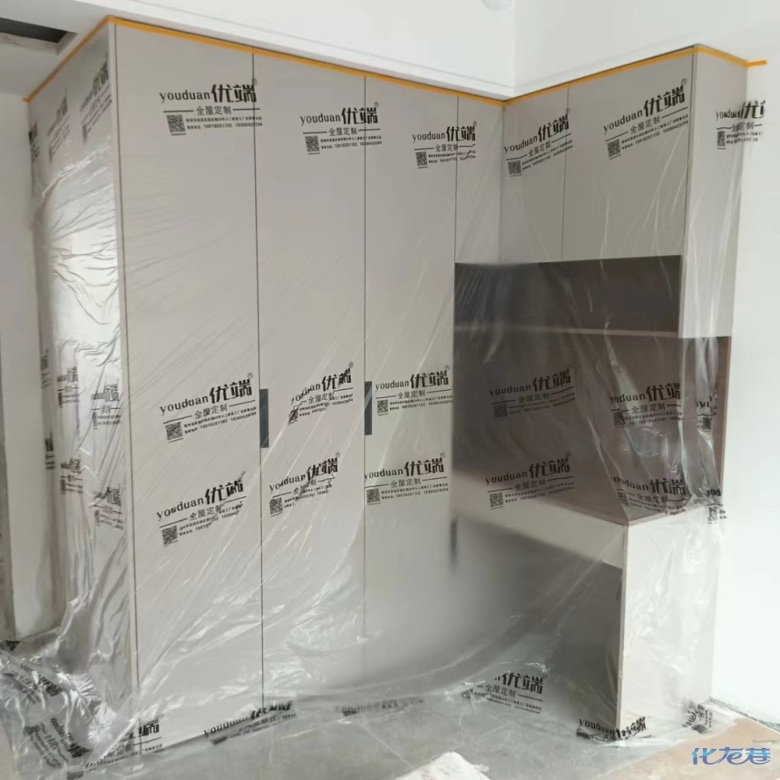 安裝完成的柜子都用塑料膜保護(hù)起來了