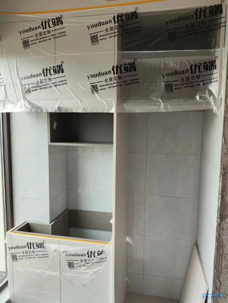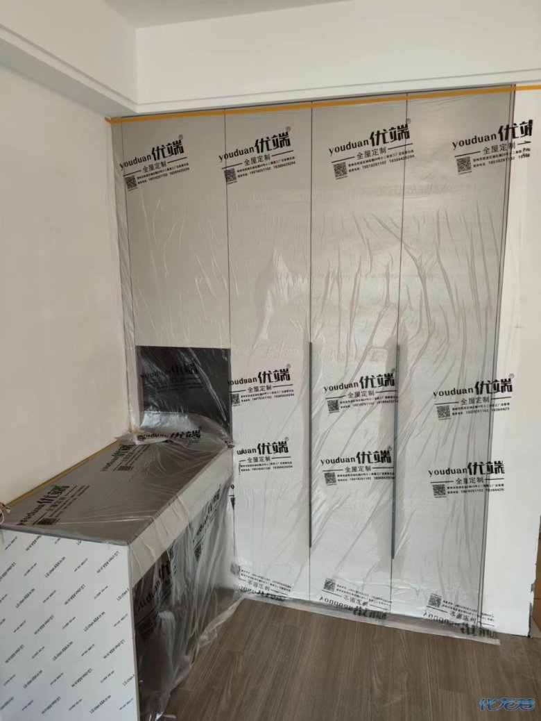 安裝完成的柜子都用塑料膜保護(hù)起來了