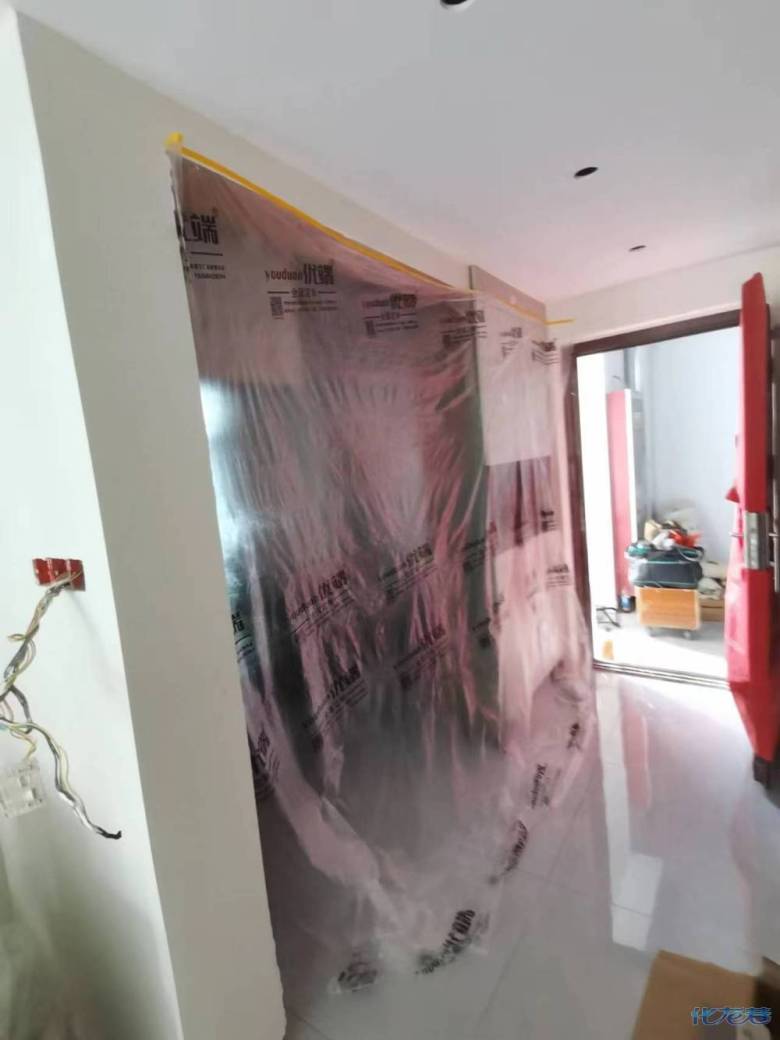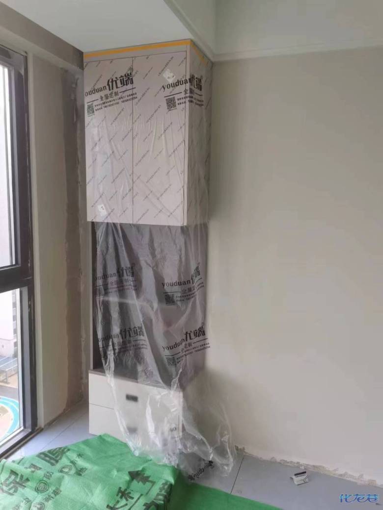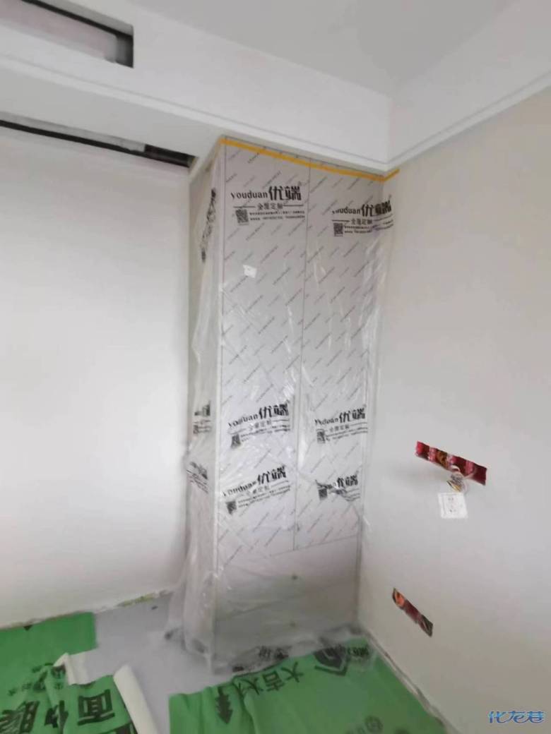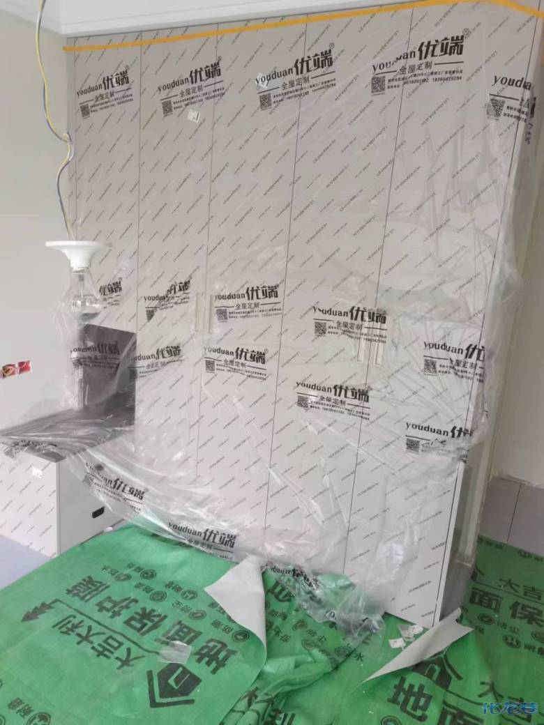 安裝完成的柜子都用塑料膜保護(hù)起來(lái)了