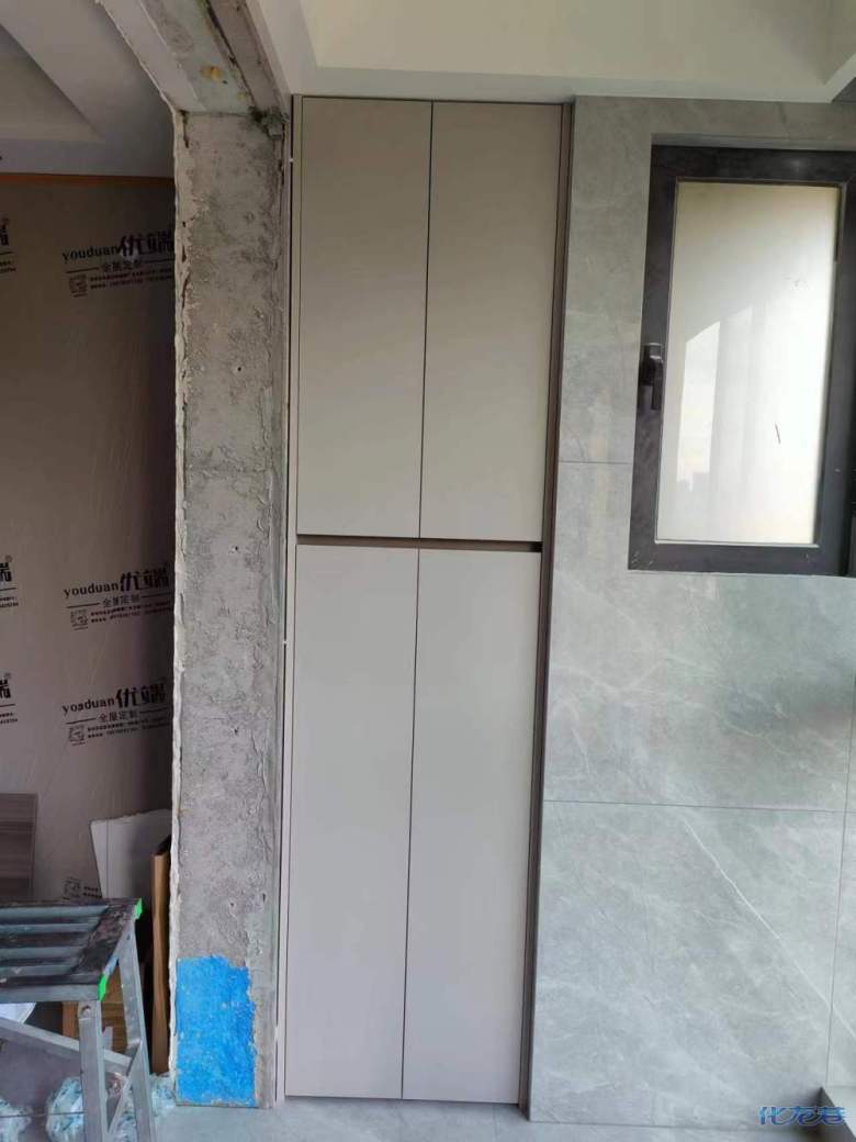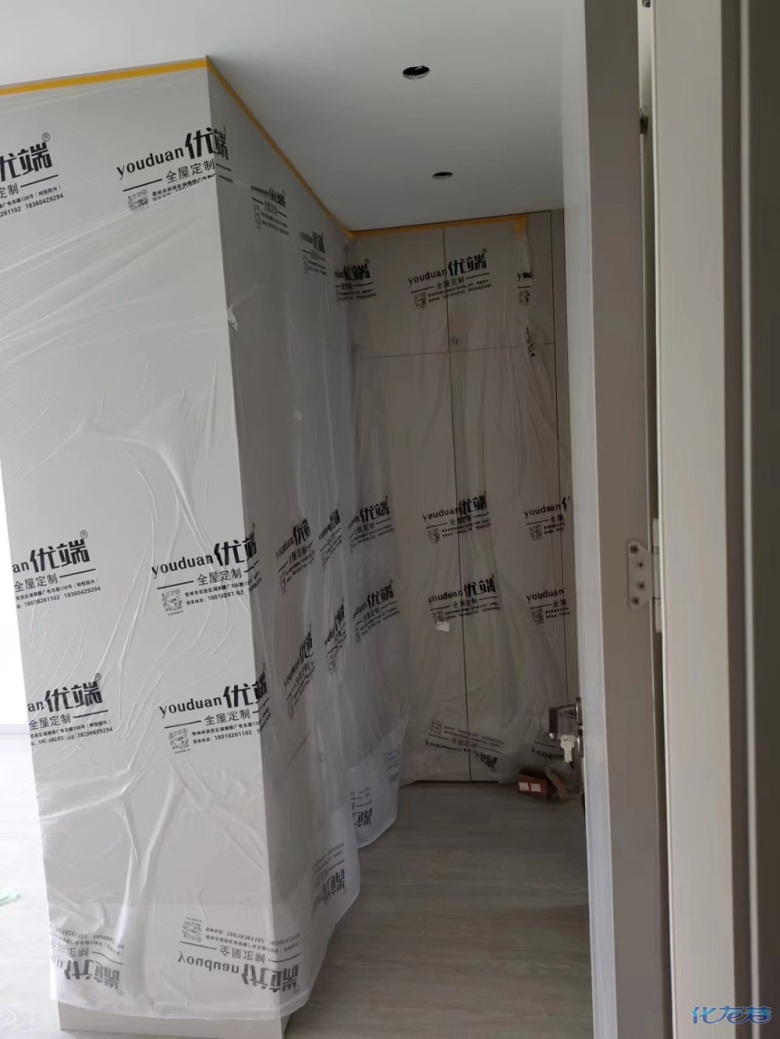 安裝完成的柜子都用塑料膜保護(hù)起來了