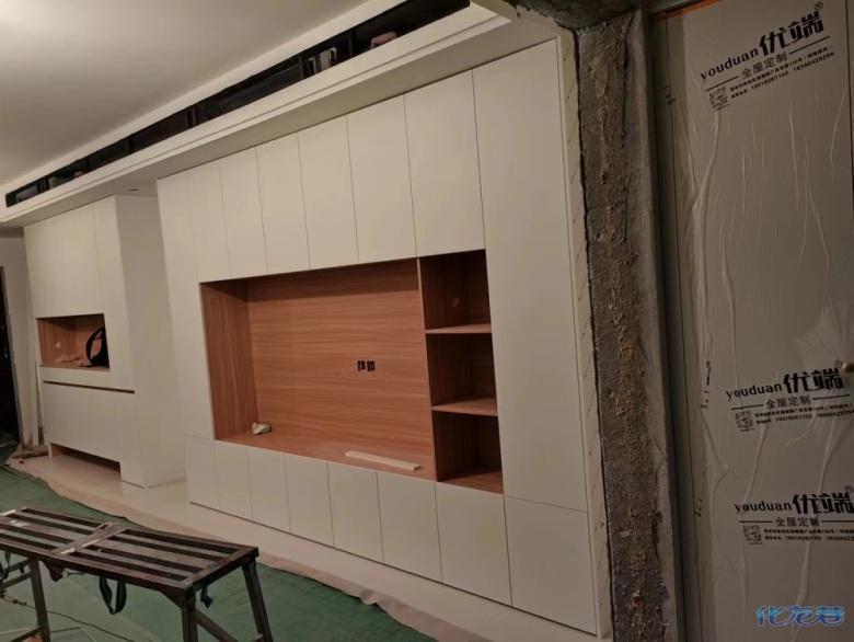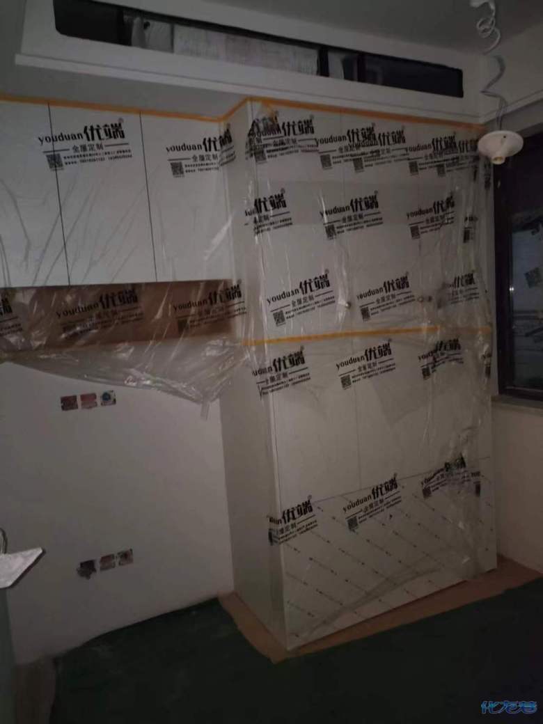 安裝完畢,安裝完成的柜子都用塑料膜保護起來了