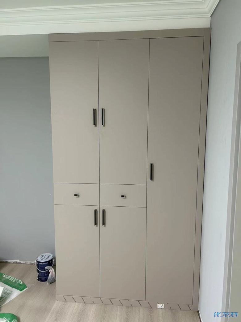 安裝完畢,高顏值的柜子當(dāng)然要搭配高品質(zhì)的五金啦:海蒂詩(shī)導(dǎo)軌,反彈器,ABS尼龍柜腳,索菲亞掛衣架等,做完的柜子效果很好,顏值非常高!