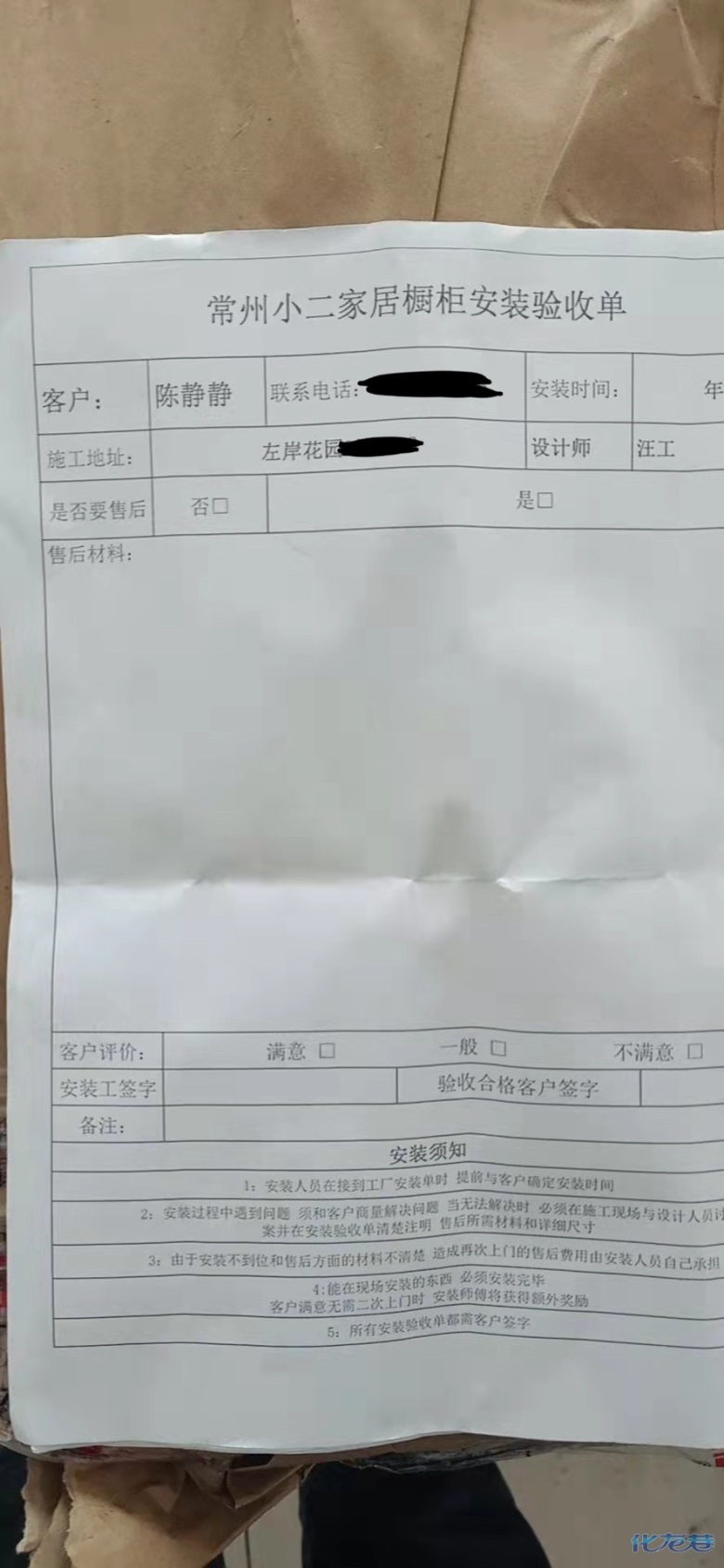 方便后期安裝師傅安裝