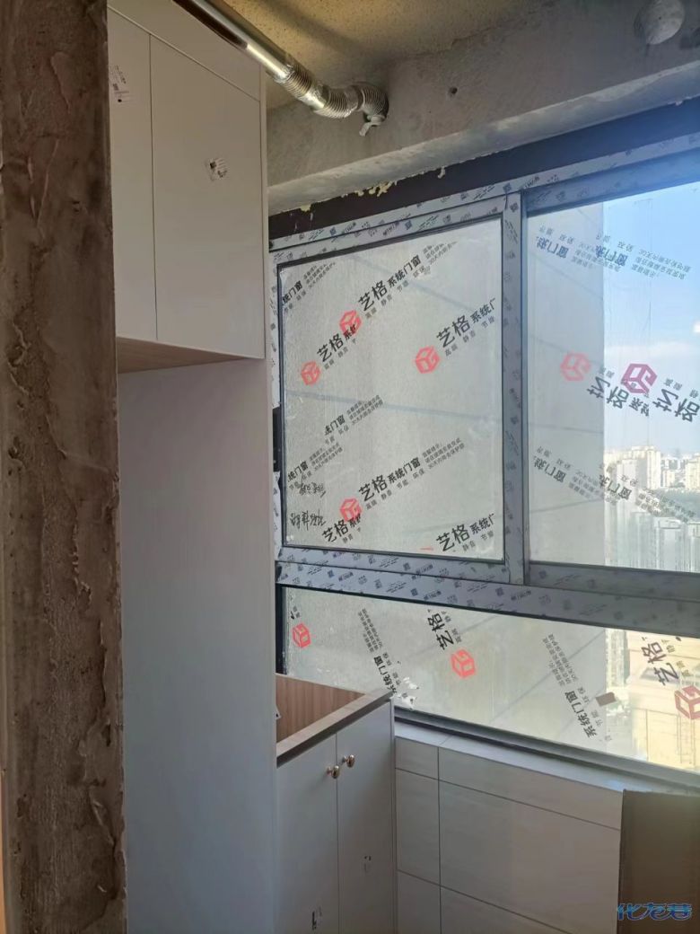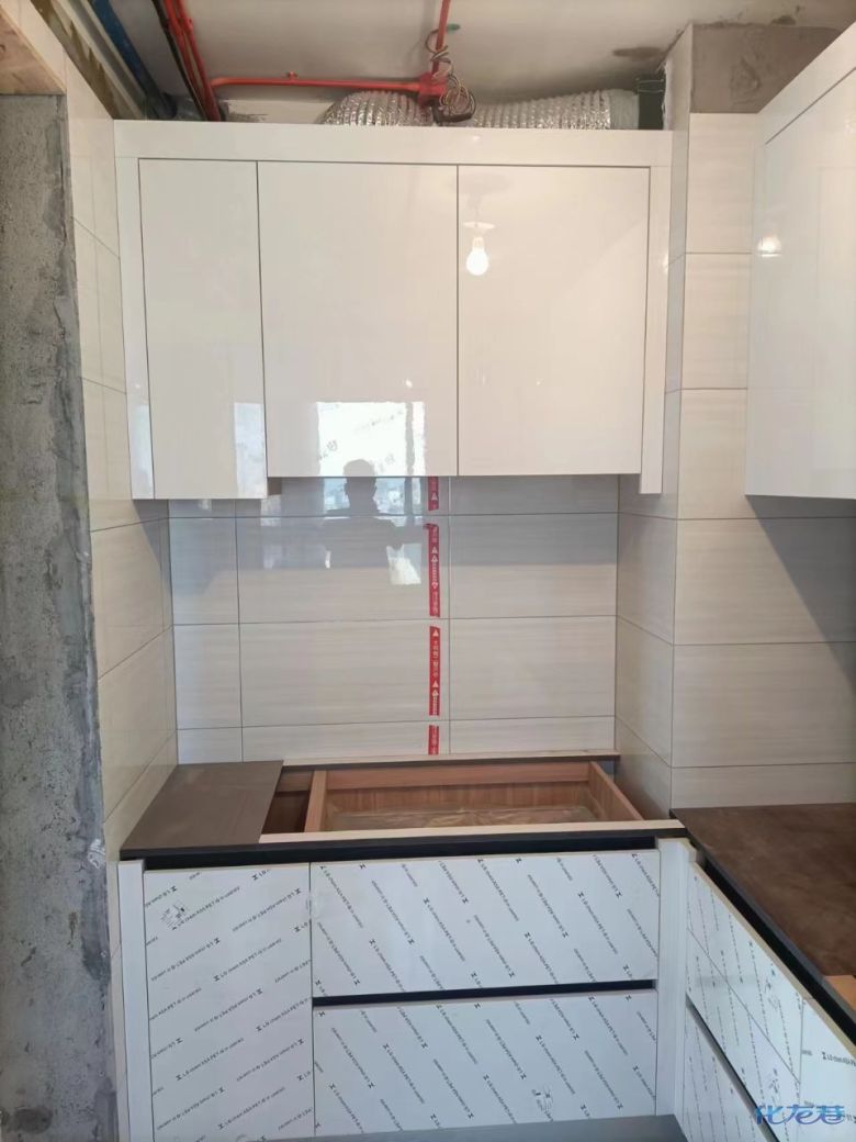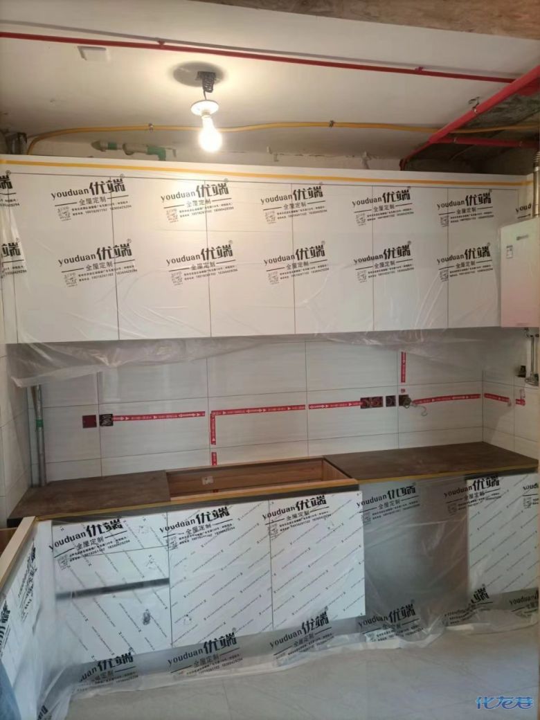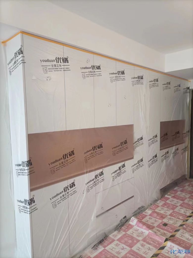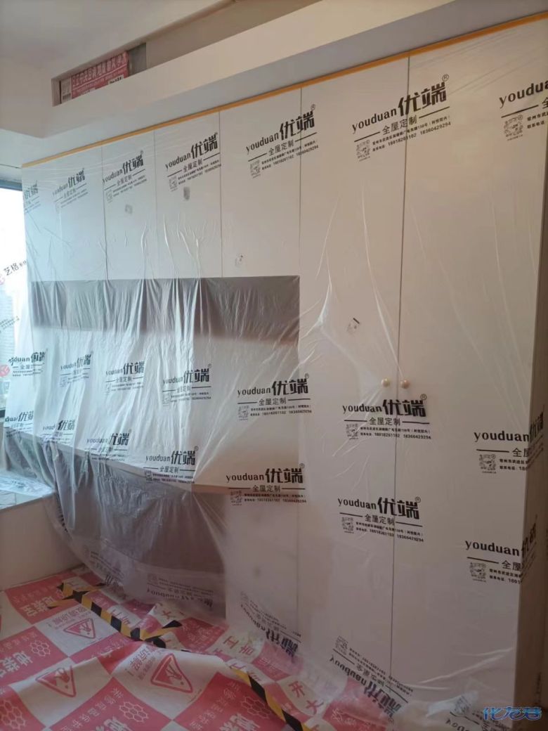 安裝完成的柜子都用塑料膜保護(hù)起來了