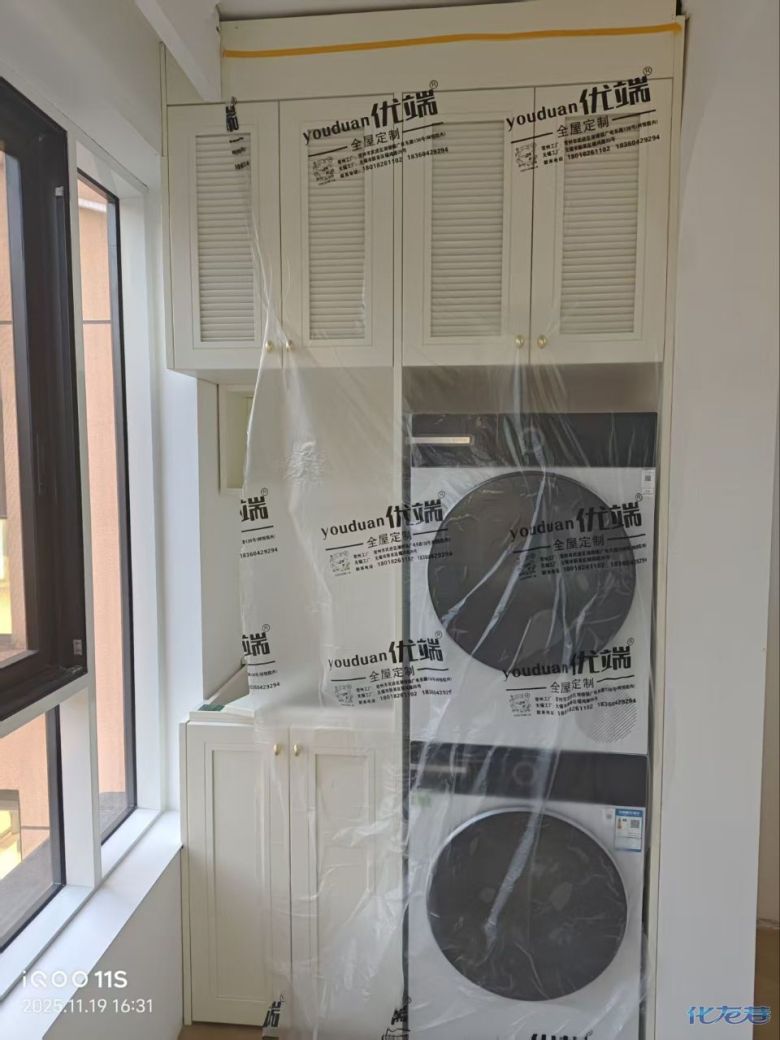 安裝完成的柜子都用塑料膜保護起來了