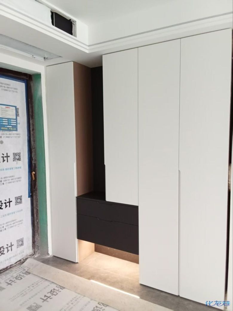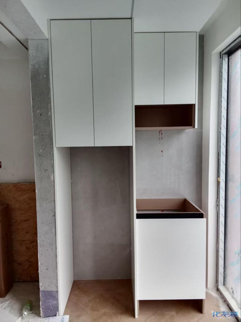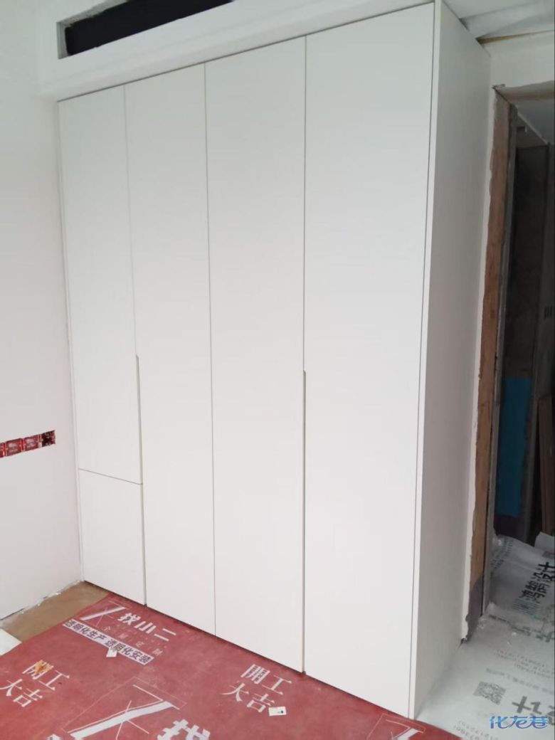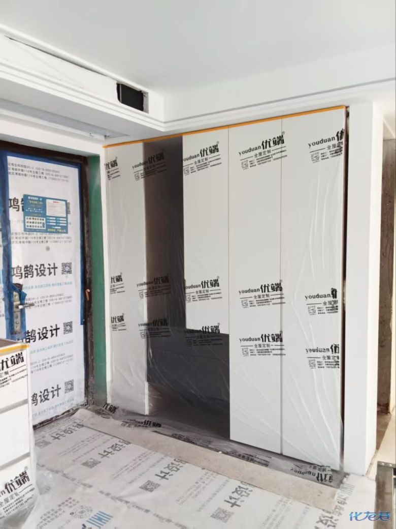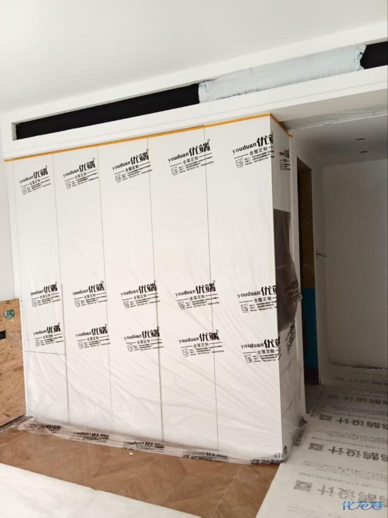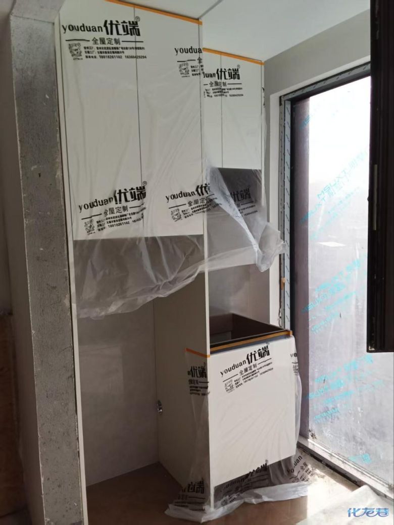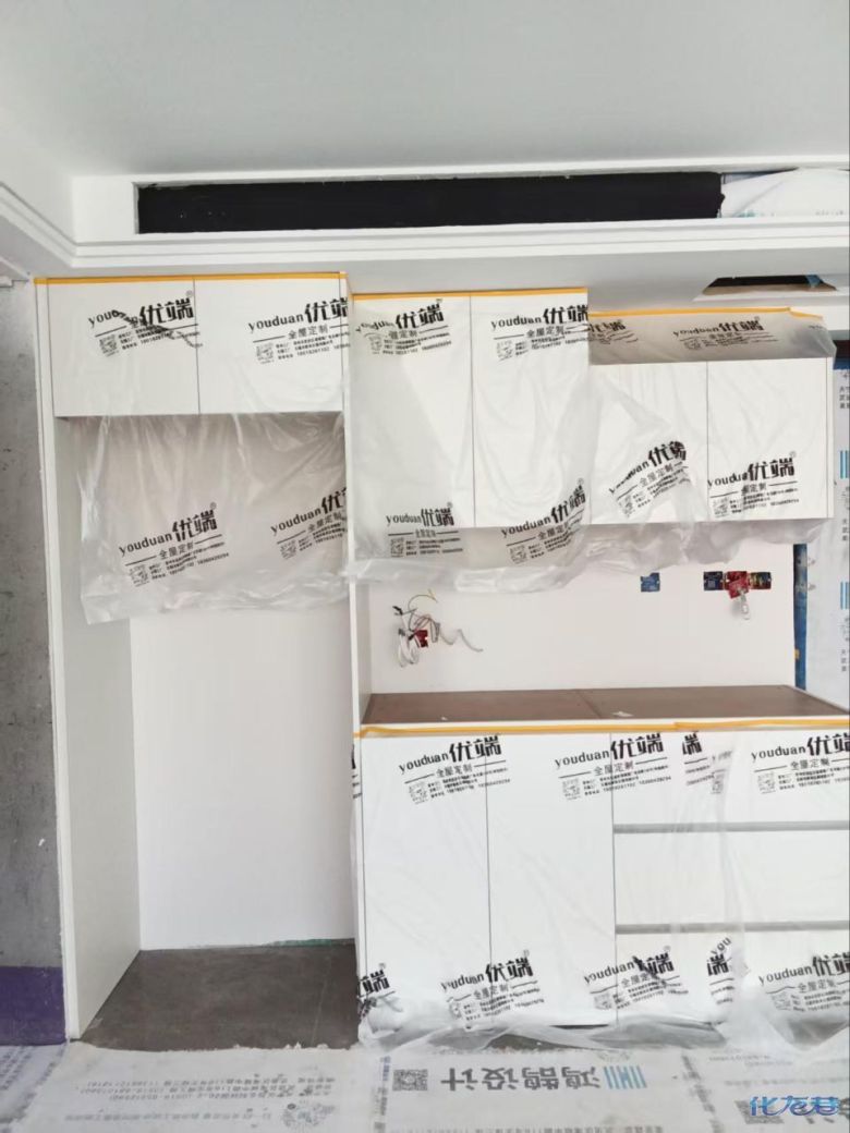 安裝完成的柜子都用塑料膜保護起來了