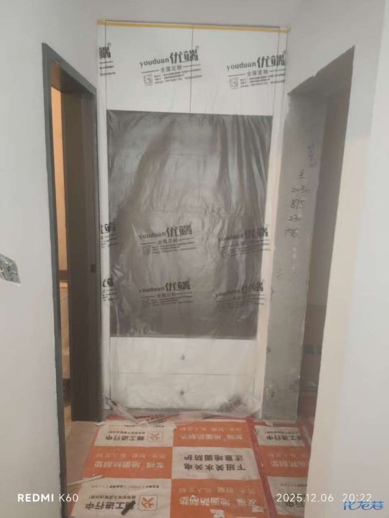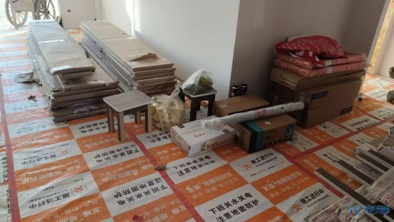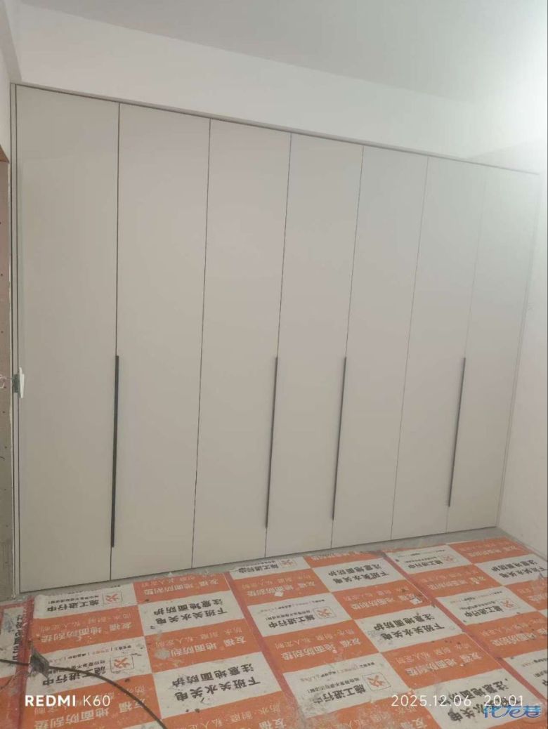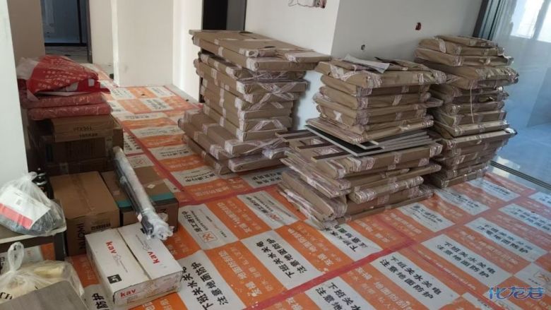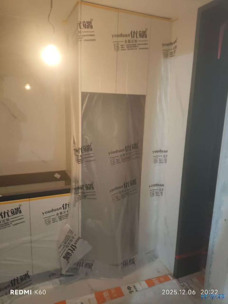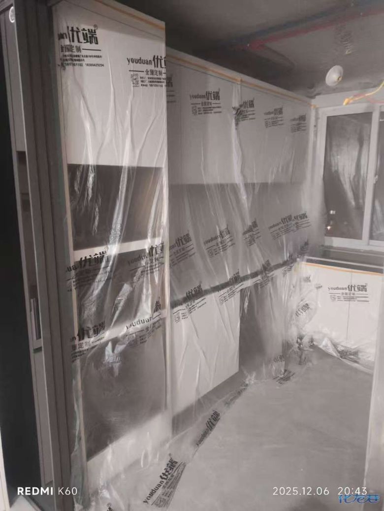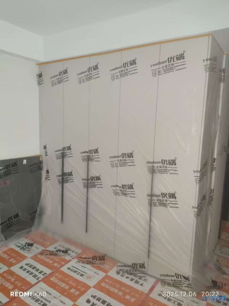 安裝完成的柜子都用塑料膜保護(hù)起來(lái)了
