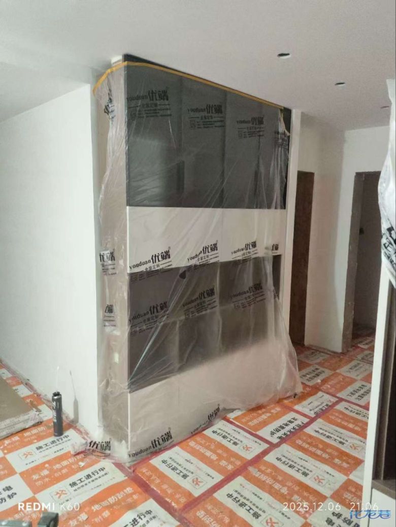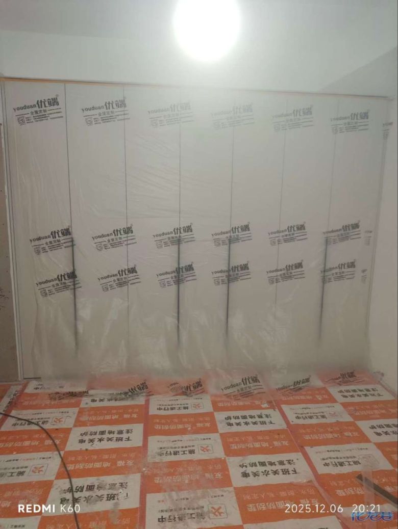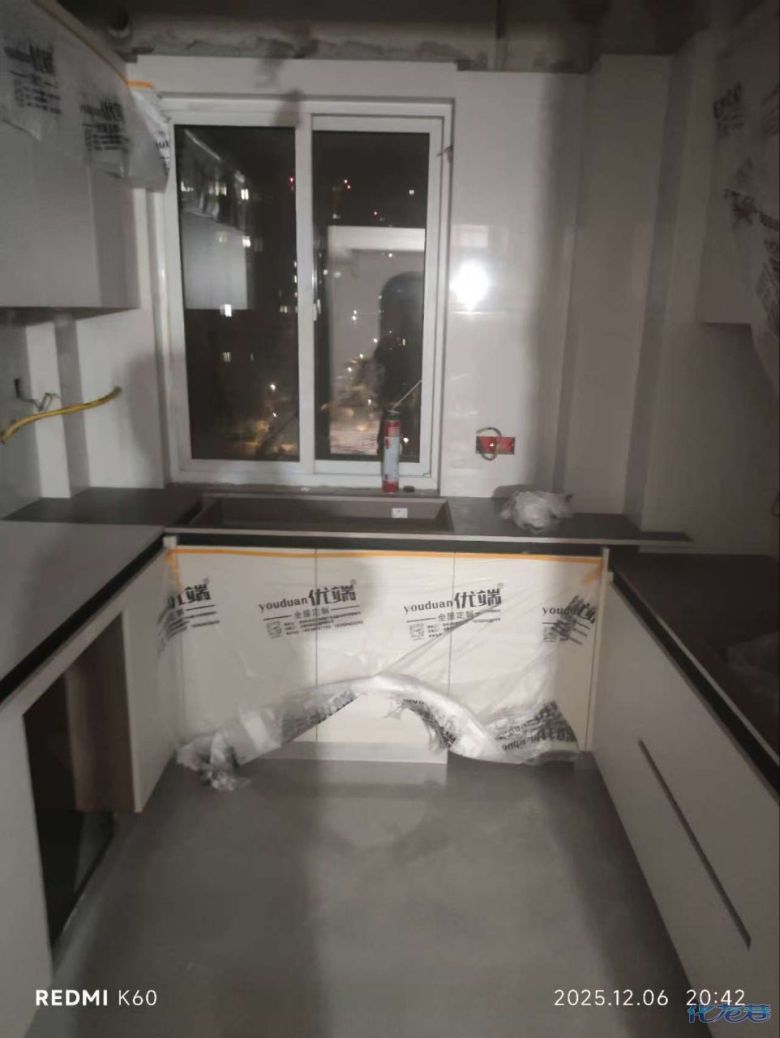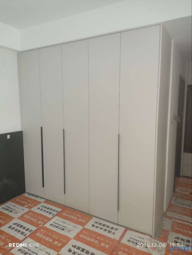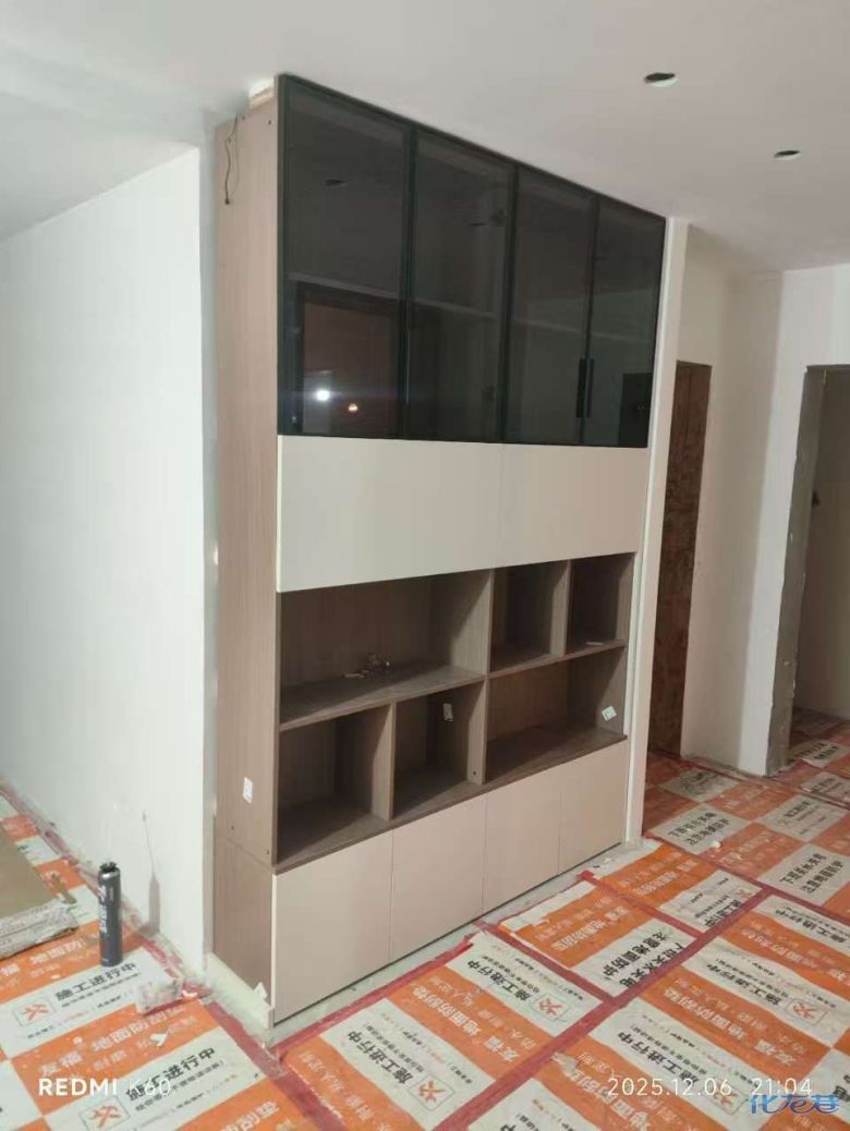 安裝完成的柜子都用塑料膜保護(hù)起來(lái)了