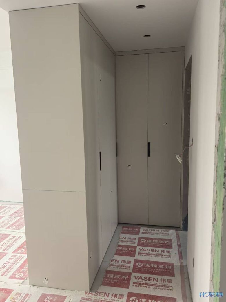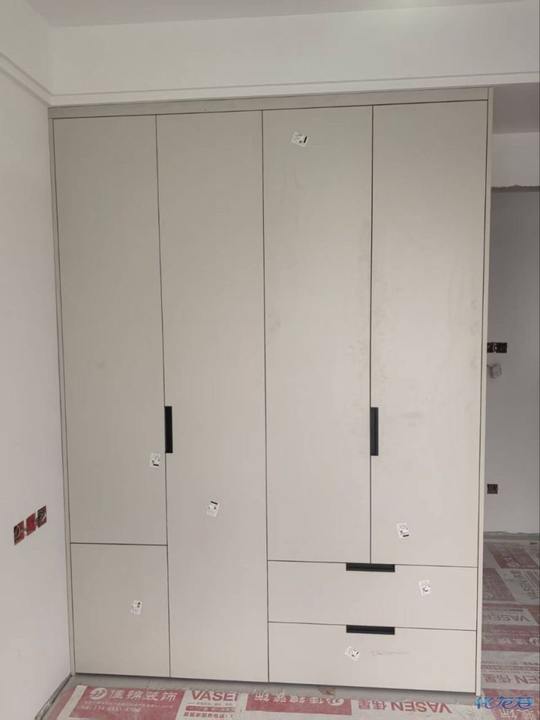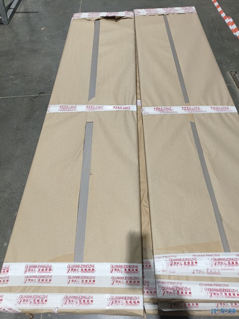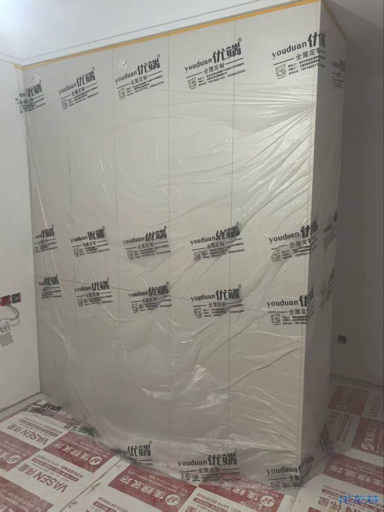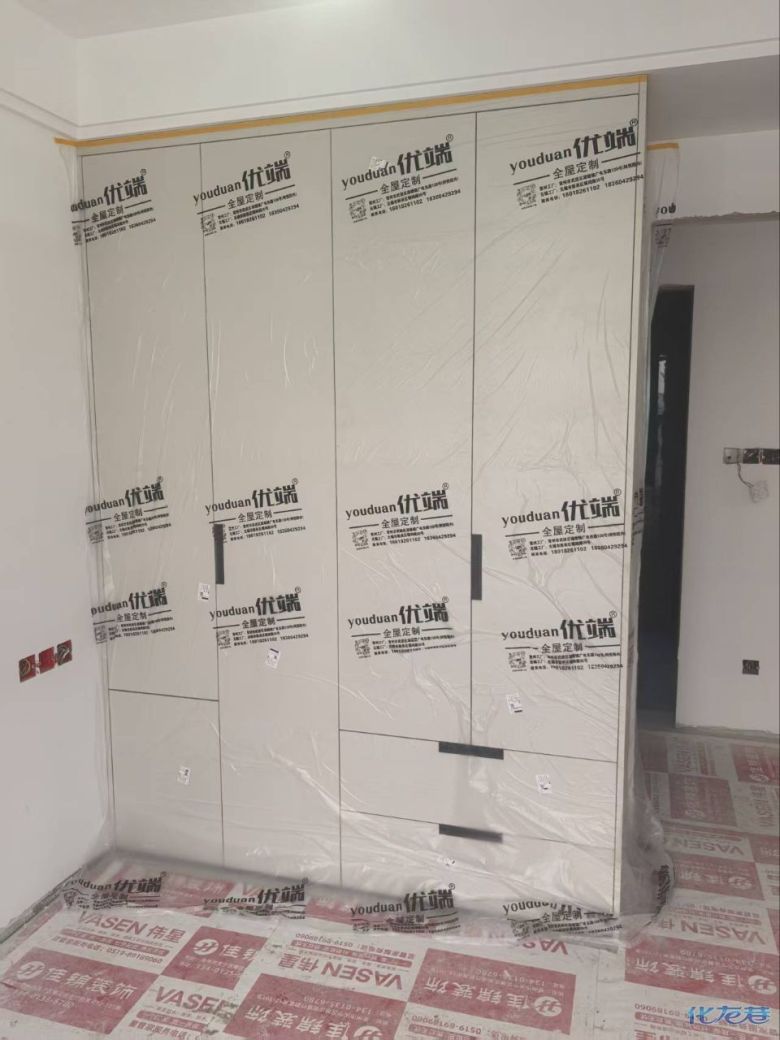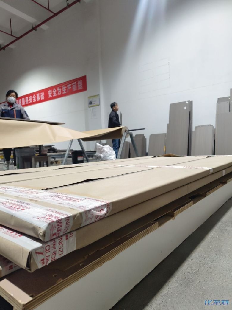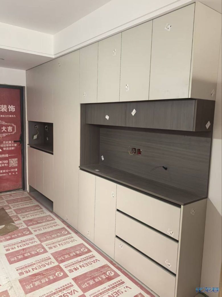 開始封邊啦 封邊的同時,側面打孔也進行時,雙管齊下。 進入打包環(huán)節(jié),我家柜子每塊板都是整個打包起來的,以防運輸過程中劃傷或者磕碰到,跟板材下面墊板一個原理哦!重新訂板會存在色差,這是重點,圈起來必考。全部打包好就可以聯(lián)系客戶送貨咯! 貨已安全送到客戶家了 安裝完成的柜子都用塑料膜保護起來了