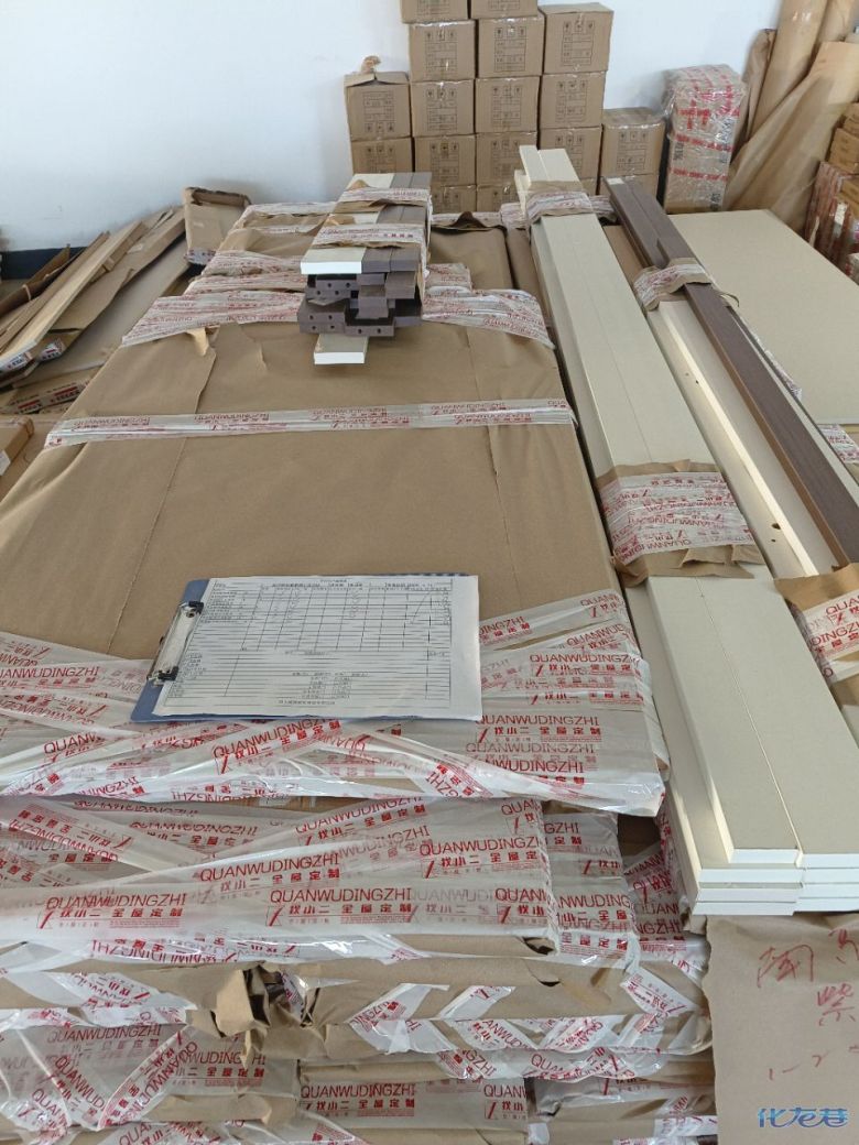 進入打包環(huán)節(jié),我家柜子每塊板都是整個打包起來的,以防運輸過程中劃傷或者磕碰到,跟板材下面墊板一個原理哦!重新訂板會存在色差,這是重點,圈起來必考。全部打包好就可以聯系客戶送貨咯!