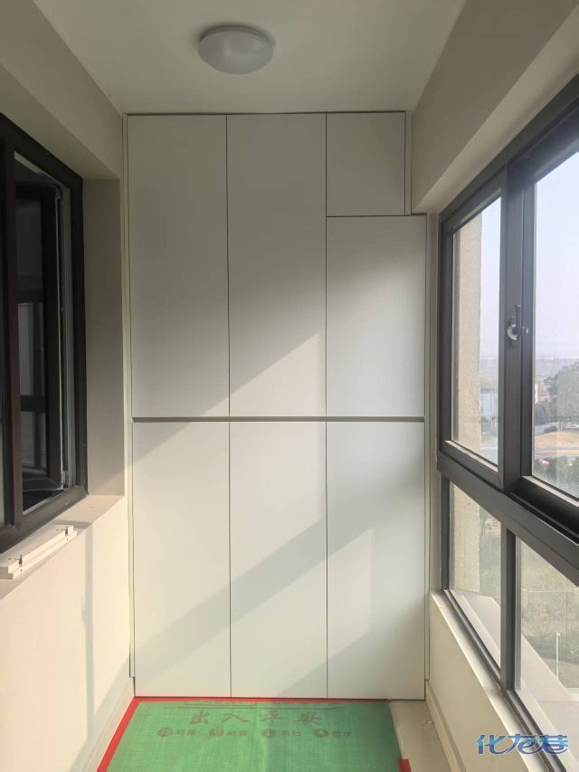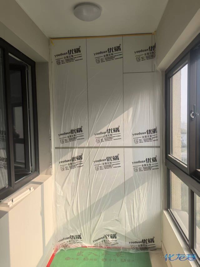 安裝完成的柜子都用塑料膜保護起來了