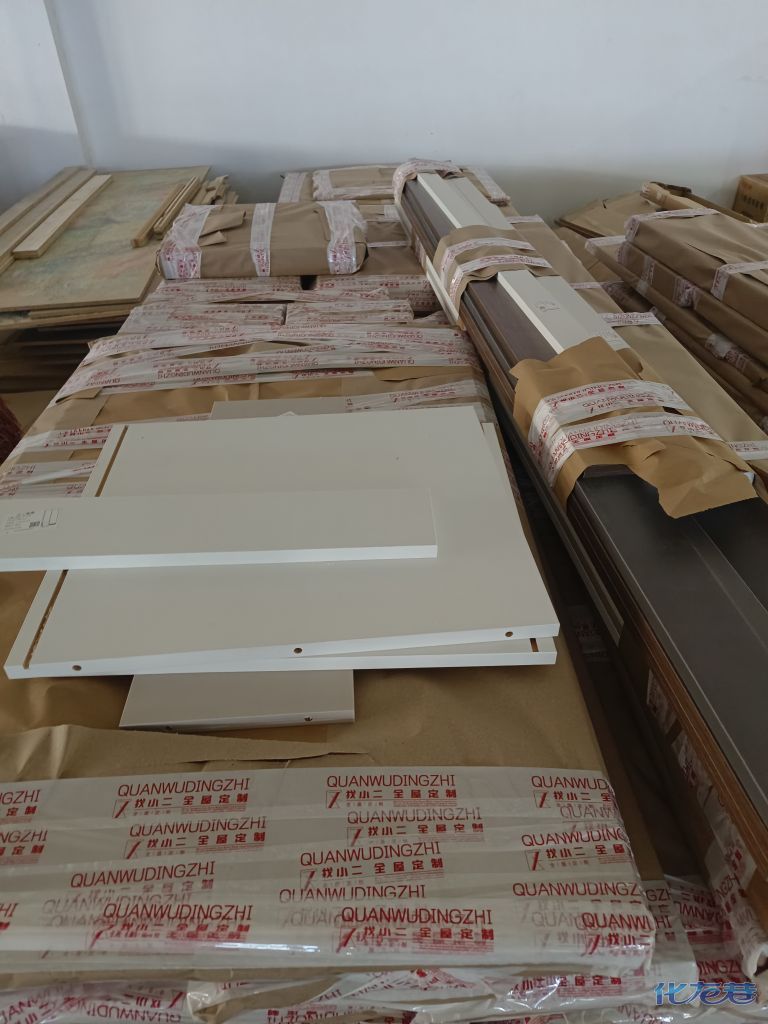 進入打包環(huán)節(jié),我家柜子每塊板都是整個打包起來的,以防運輸過程中劃傷或者磕碰到,跟板材下面墊板一個原理哦!重新訂板會存在色差,這是重點,圈起來必考。全部打包好就可以聯(lián)系客戶送貨咯!