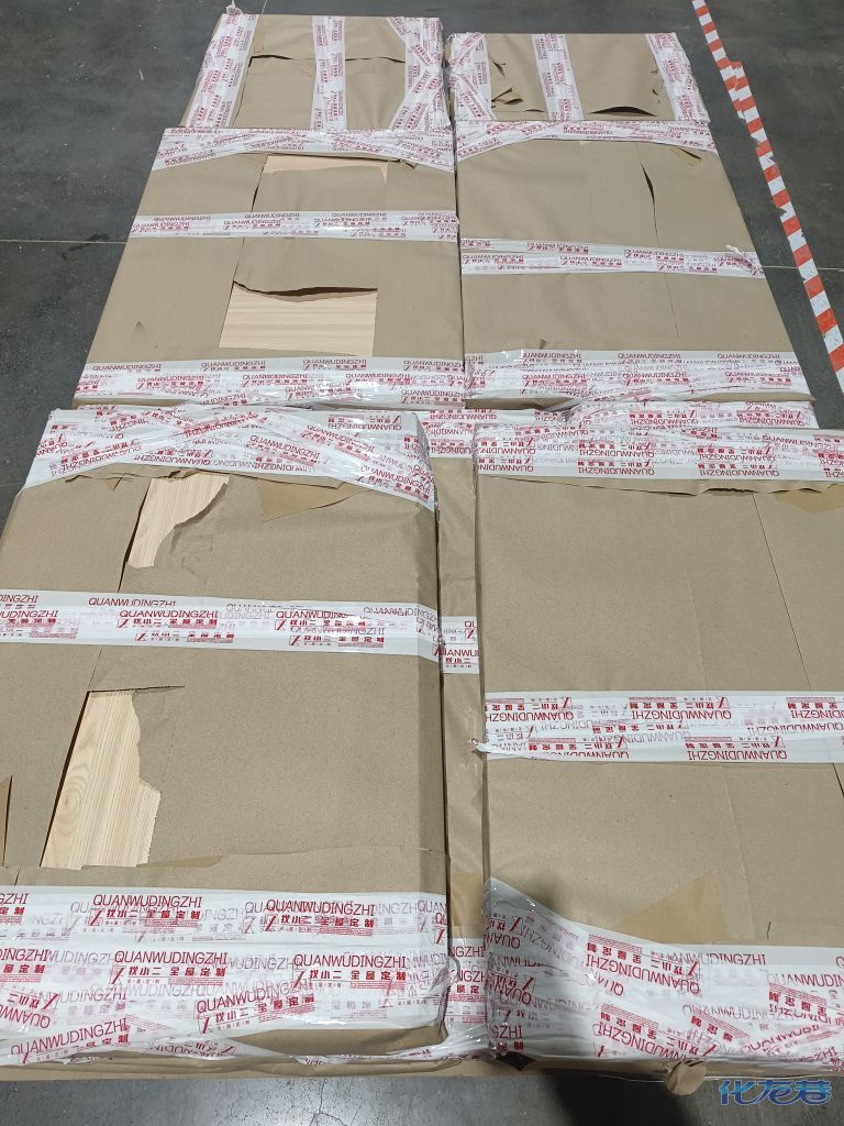 進(jìn)入打包環(huán)節(jié),我家柜子每塊板都是整個(gè)打包起來的,以防運(yùn)輸過程中劃傷或者磕碰到,跟板材下面墊板一個(gè)原理哦!重新訂板會(huì)存在色差,這是重點(diǎn),圈起來必考。全部打包好就可以聯(lián)系客戶送貨咯!