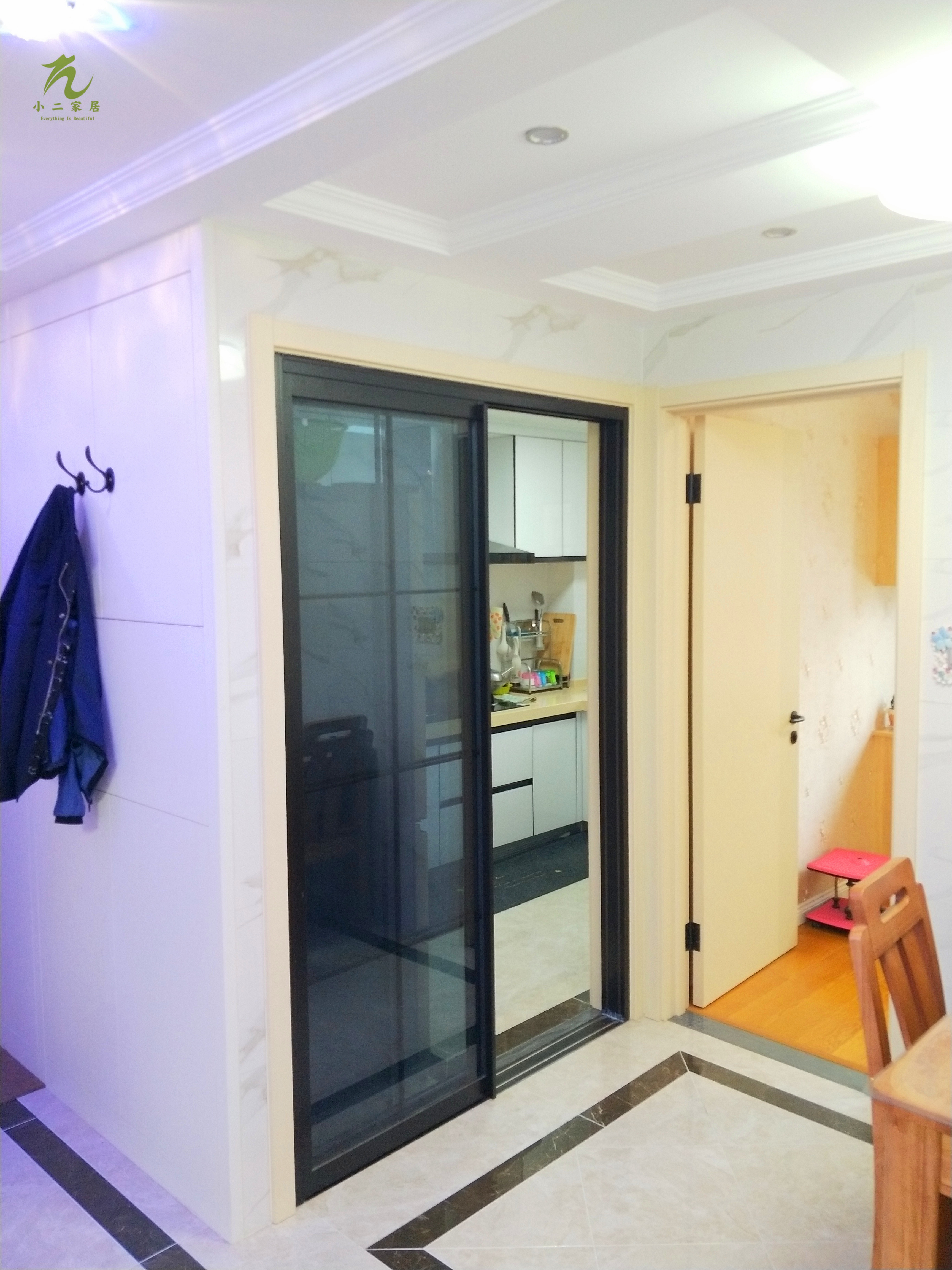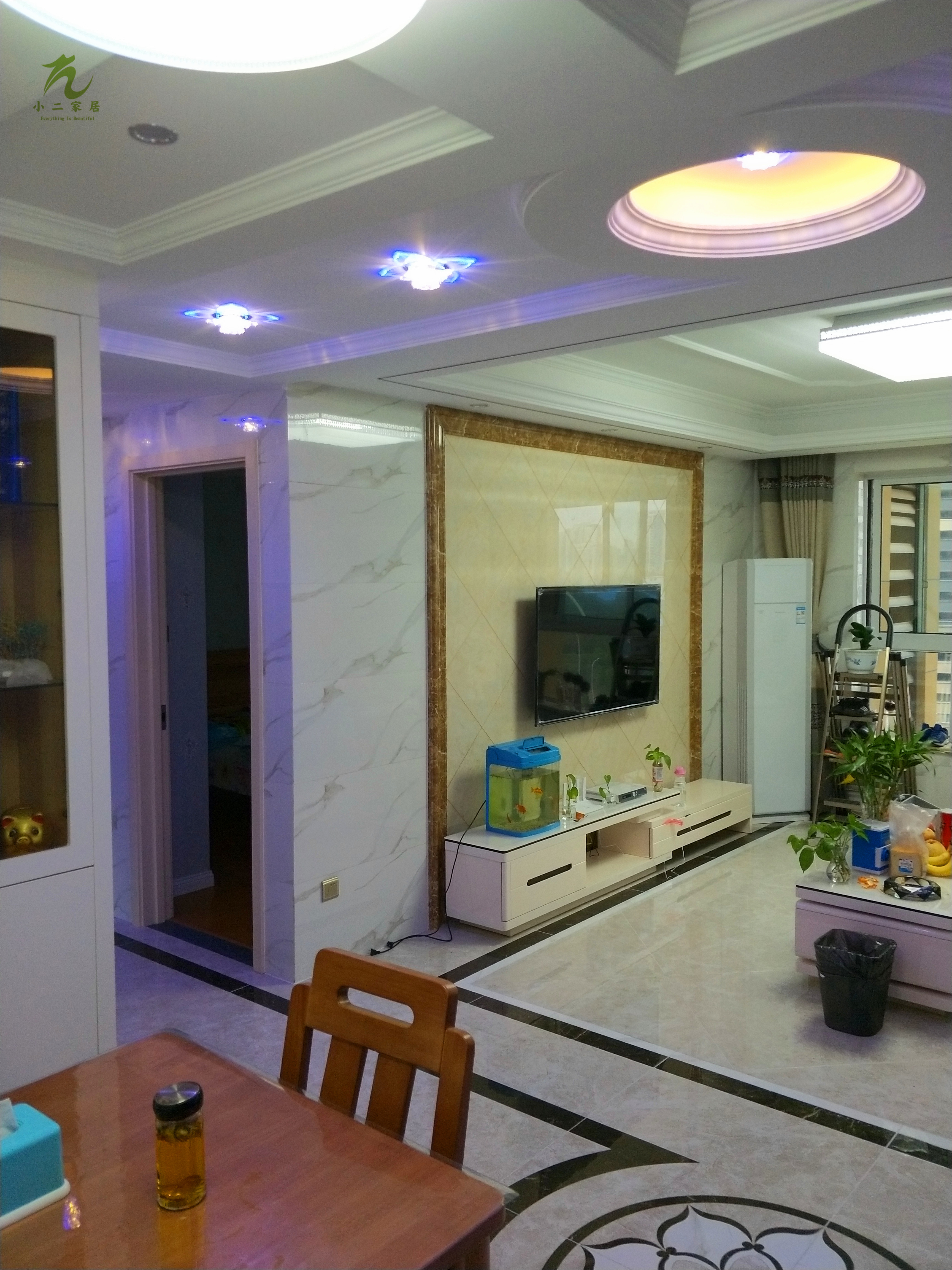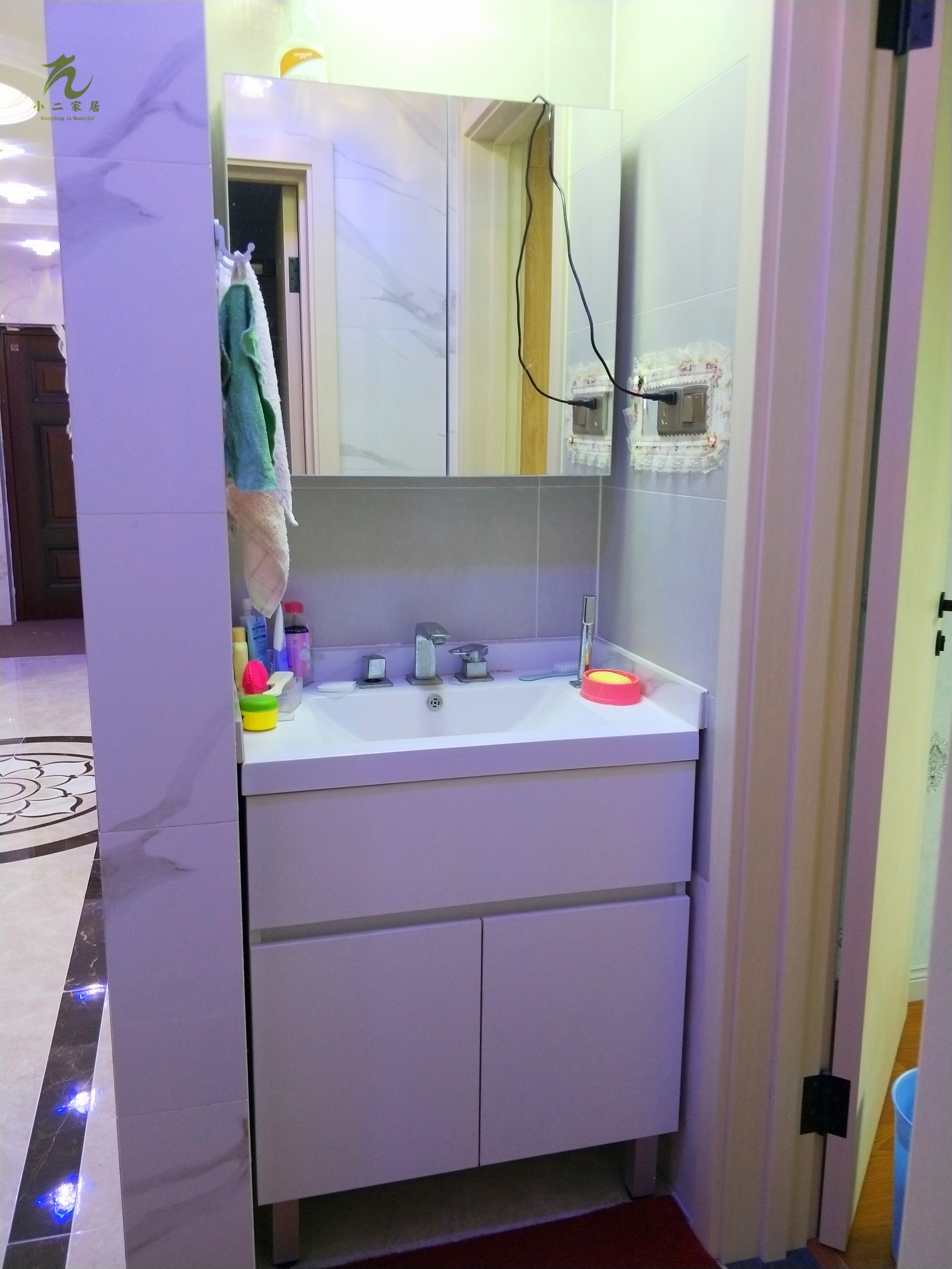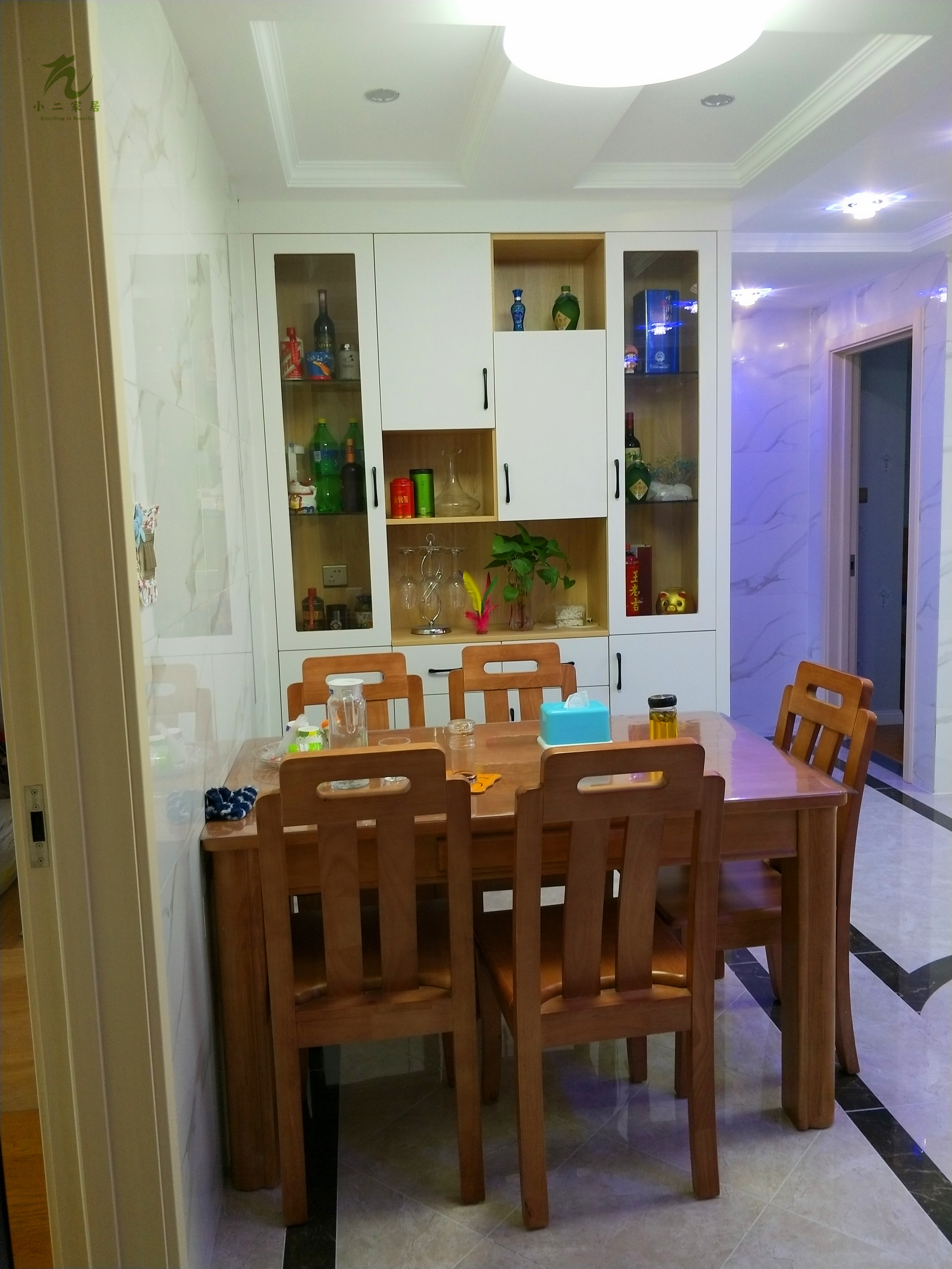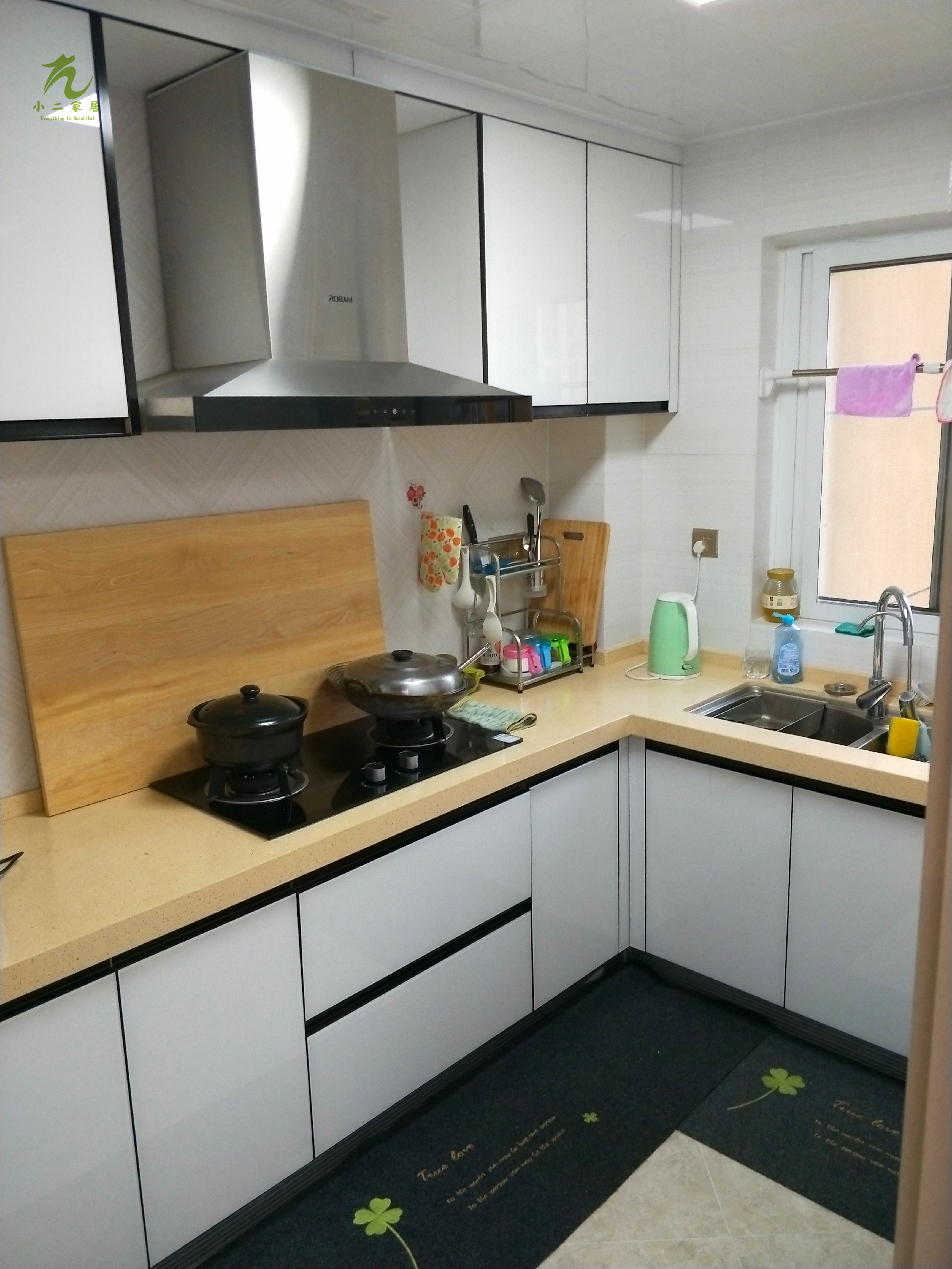 效果圖來(lái)啦,主家已經(jīng)入住了一段時(shí)間了,廚房是白色的晶鋼門(mén)櫥柜~很好看,看著很干凈~(yú)其他白色和原木色的柜子
