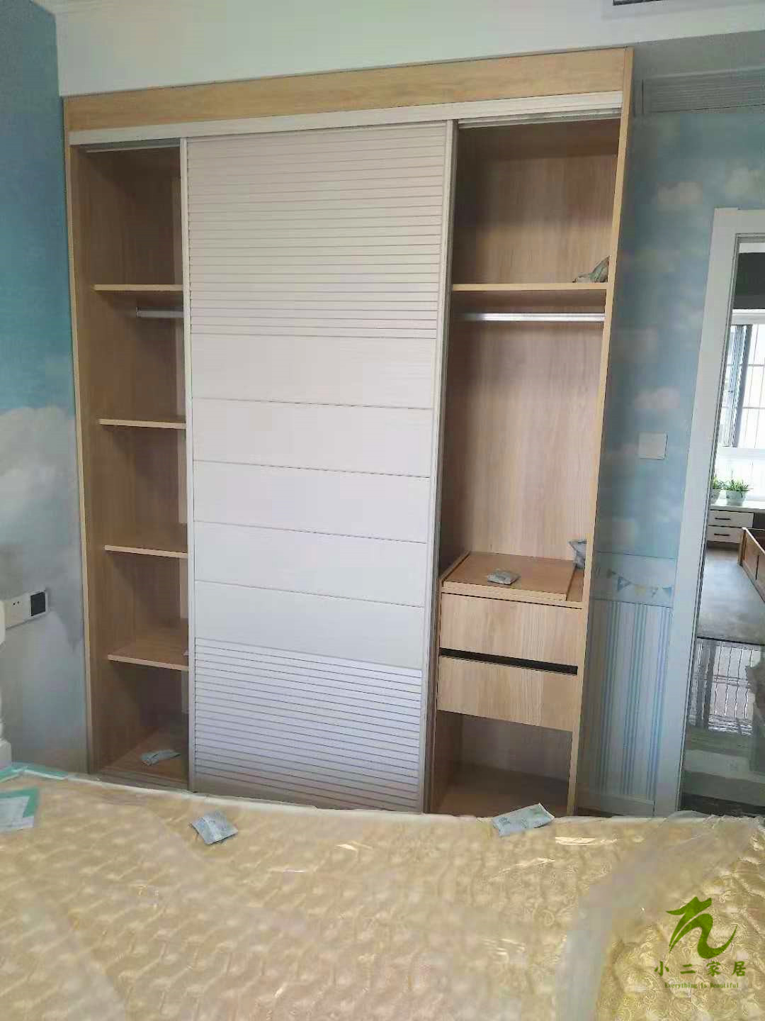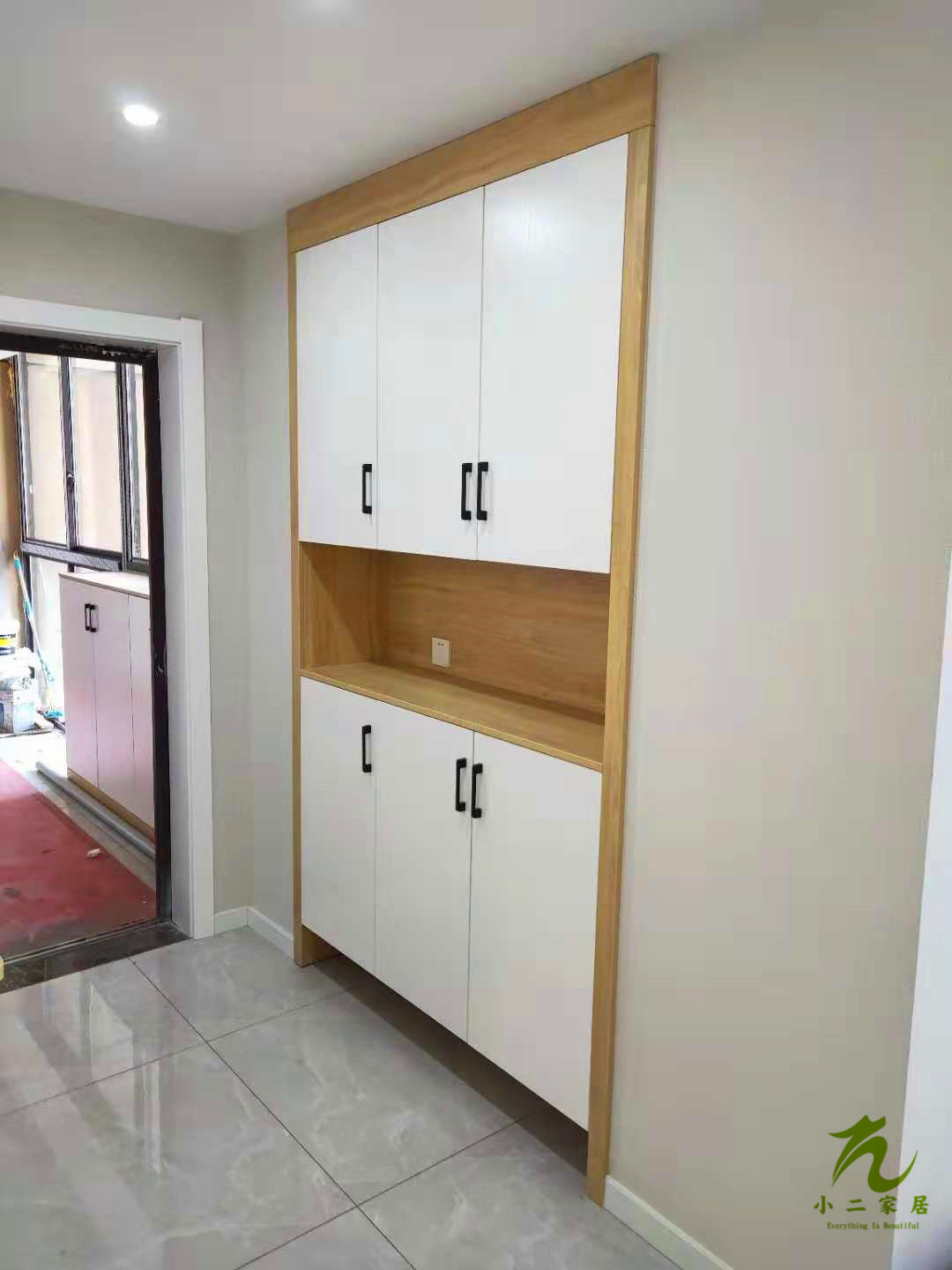 半成品的圖先放上來,這柜子的拼色是不是很驚艷呢!原木色加白色也是很經(jīng)典了