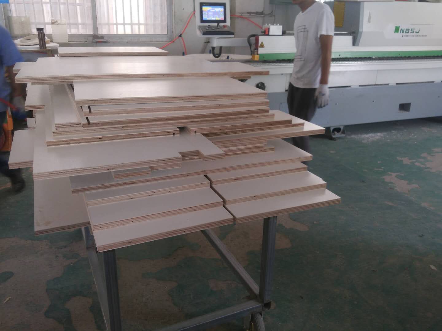 抽屜板準(zhǔn)備封邊了,酒柜的板打孔中。