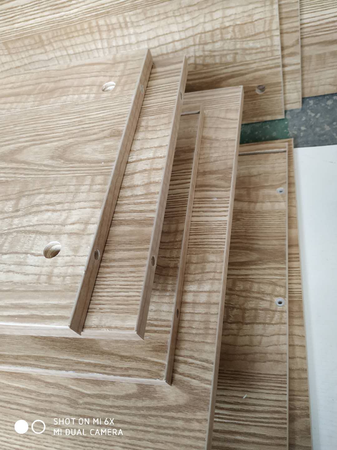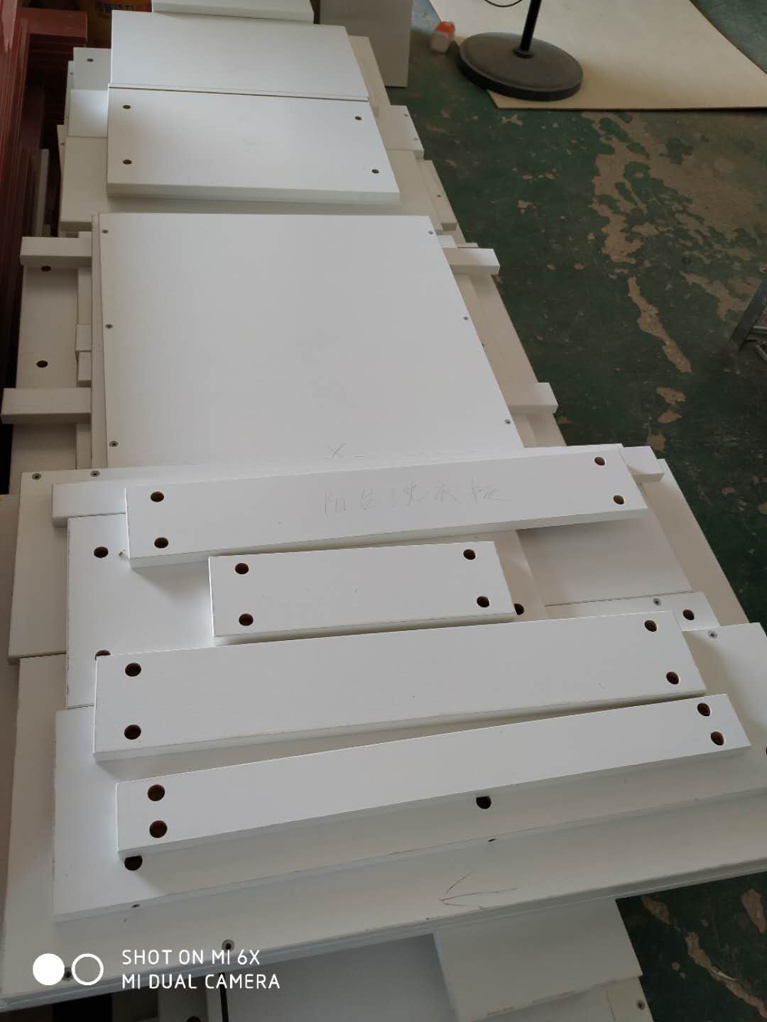 已封邊,陽臺(tái)洗衣柜,廚房吊柜的板打孔中,平安樹板材高級(jí)藍(lán)光防偽哦!