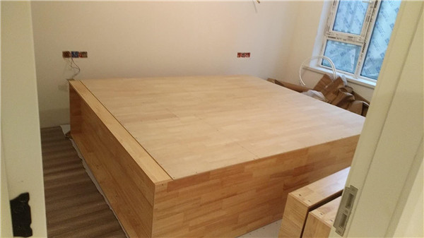 小房間高柜板打孔中,活動(dòng)層板的板材制作中~圖5是已經(jīng)封好邊抽屜抽面的板材,柜體板材都是使用橡膠指接木制作,紋理優(yōu)美,質(zhì)地均勻。