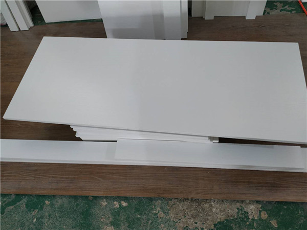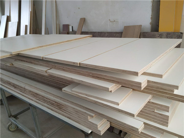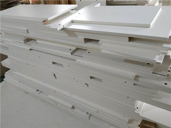 圖4圖5是待封邊的柜體側(cè)板和底板,板材使用平安樹暖白色實木多層板制作。