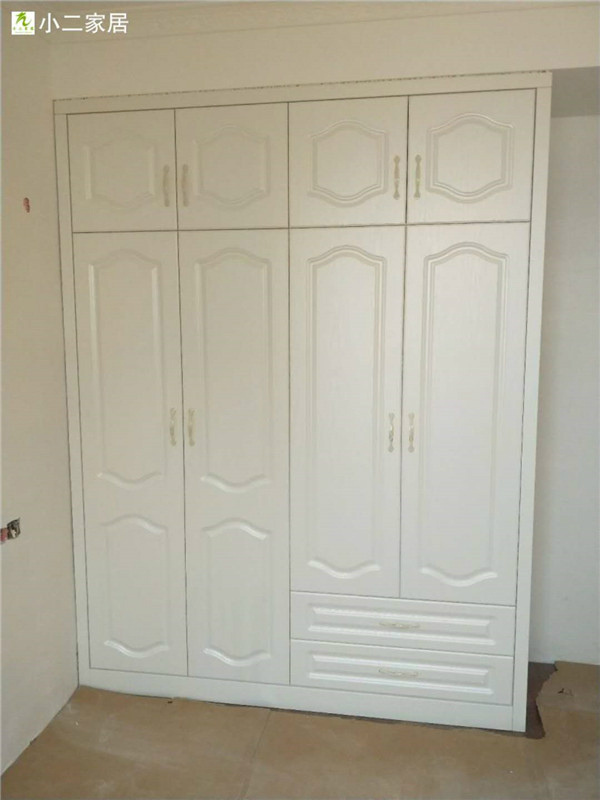 圖2圖3是已經(jīng)封好邊的櫥柜和衣柜板材,封邊條上印有小二家居的logo~待打孔,