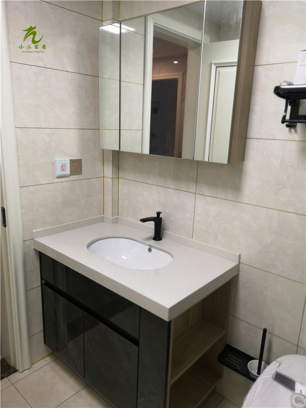 封邊使用的是熱熔顆粒膠哦,封邊條上印有小二家居的logo!