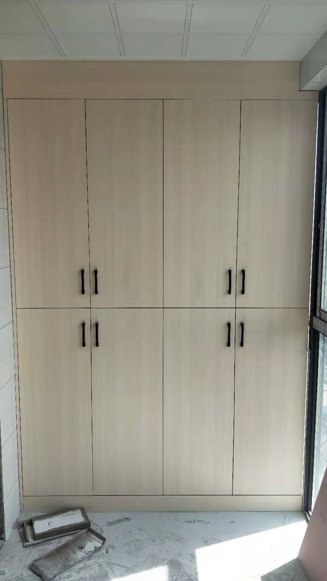 開始制作啦,櫥柜板材已經(jīng)裁好板了,一會就可以封邊,板材使用平安樹清水橡木色實木多層板制作,