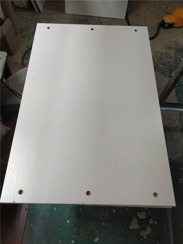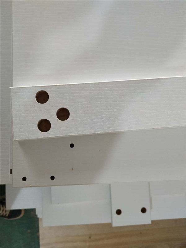 櫥柜板材已經封好邊打好孔啦,打孔使用專門的機器打孔,孔洞大小可調節(jié),打出來的孔圓潤不爆邊。
