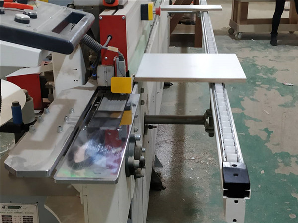 開始封邊啦,機器溫度到達200℃封出來的邊牢固,采用進口法國波士熱熔顆粒膠,封邊條上帶有小二家居的logo!