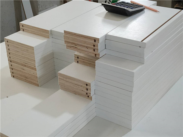 抽屜抽面的板材還有一部分需要封邊,封邊條上印有小二家居的logo,飄窗板材待打孔,所有板材都使用平安樹實木多層板制作~